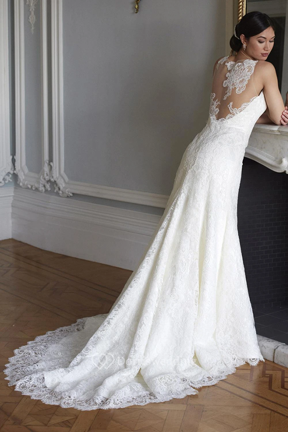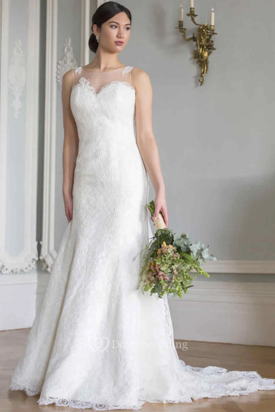 Sheath Sleeveless Scoop-Neck Lace Wedding Dress With Illusion
