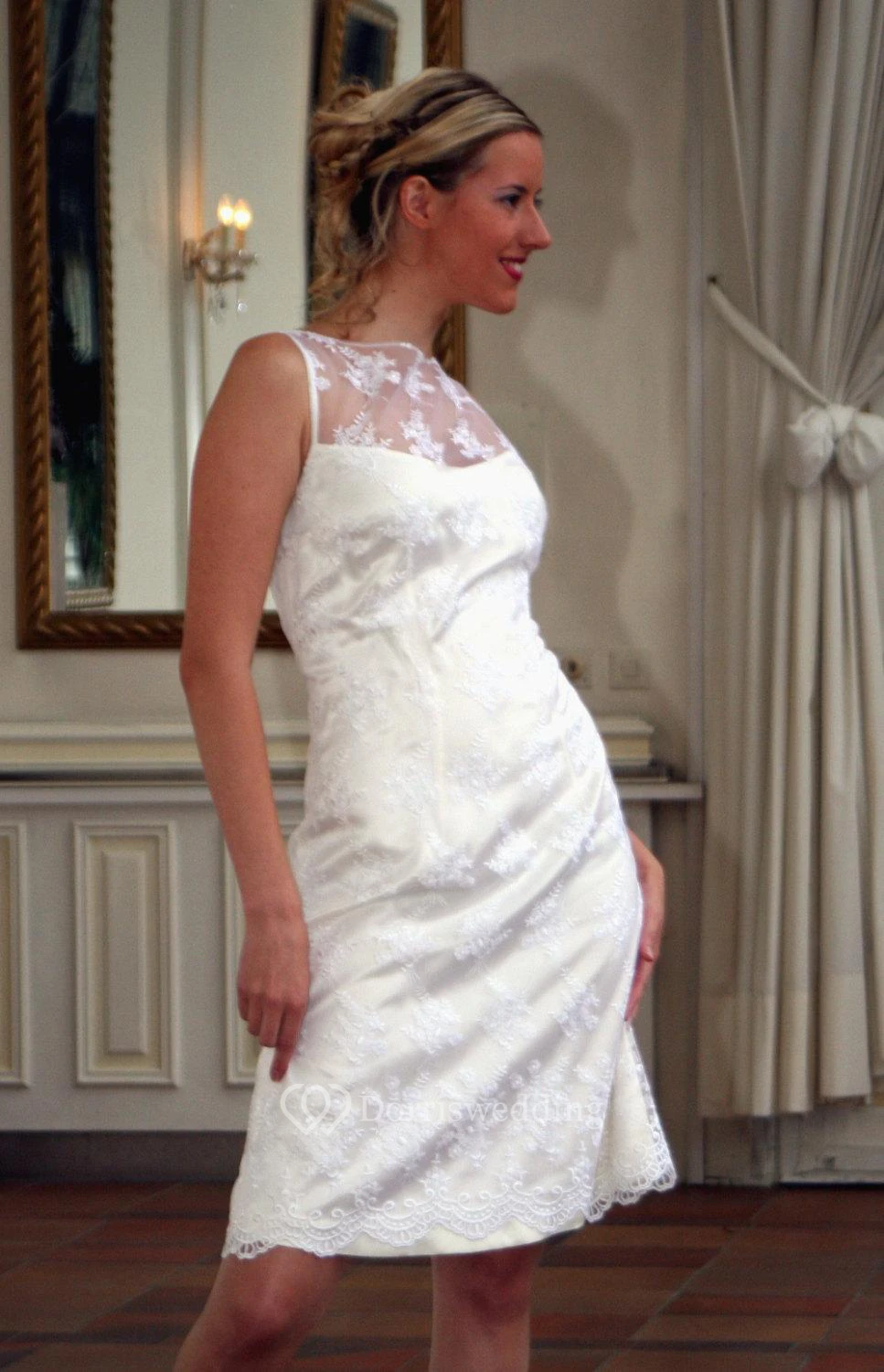 Sheath Sleeveless Short Lace Gown With Lace-Up Back