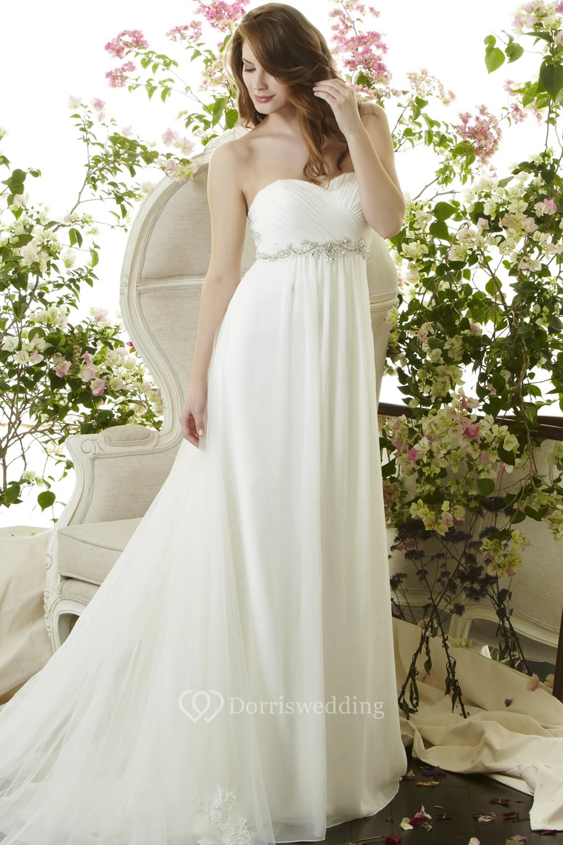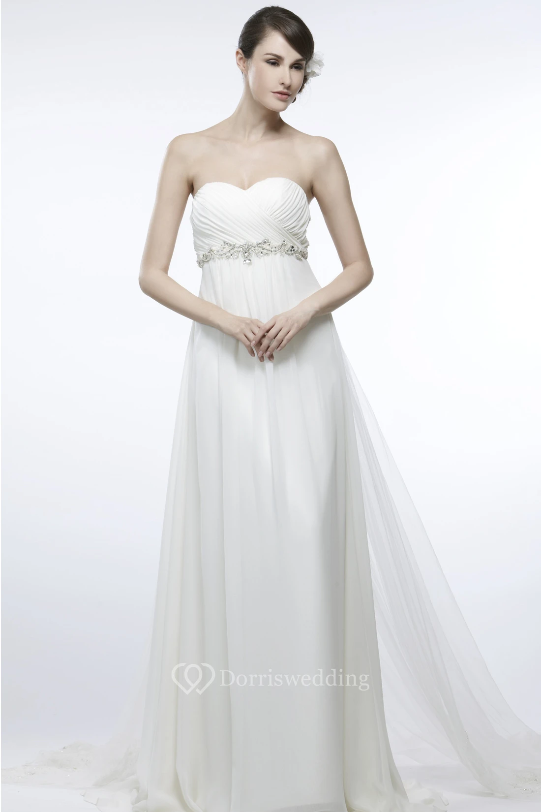 Sheath Sleeveless Sweetheart Criss-Cross Empire Chiffon Wedding Dress