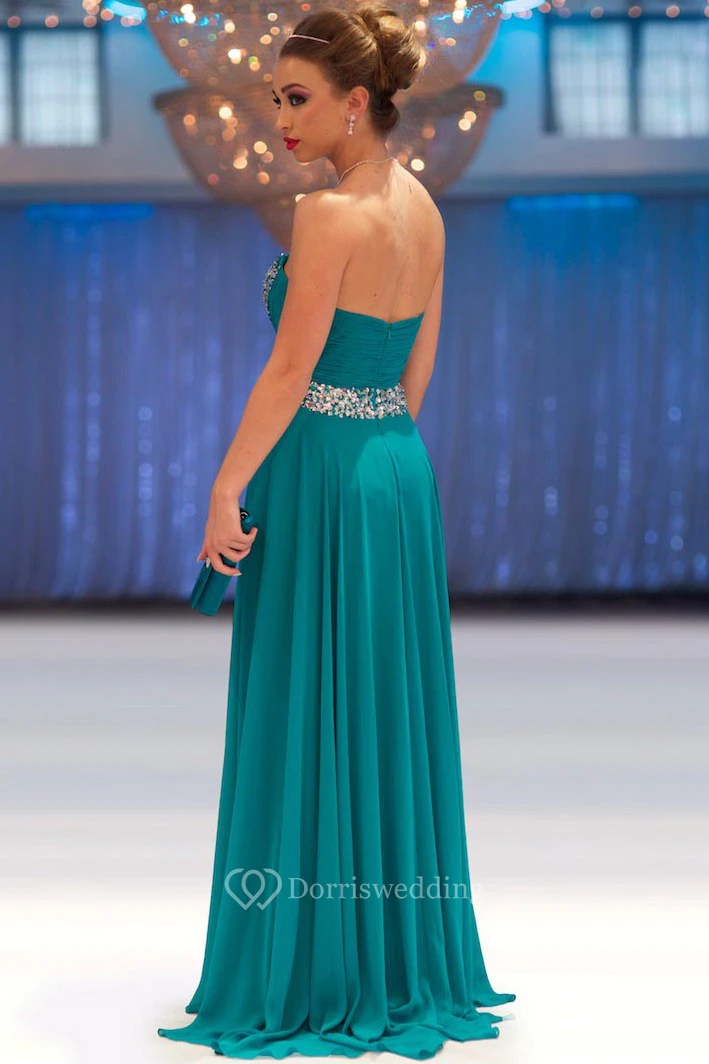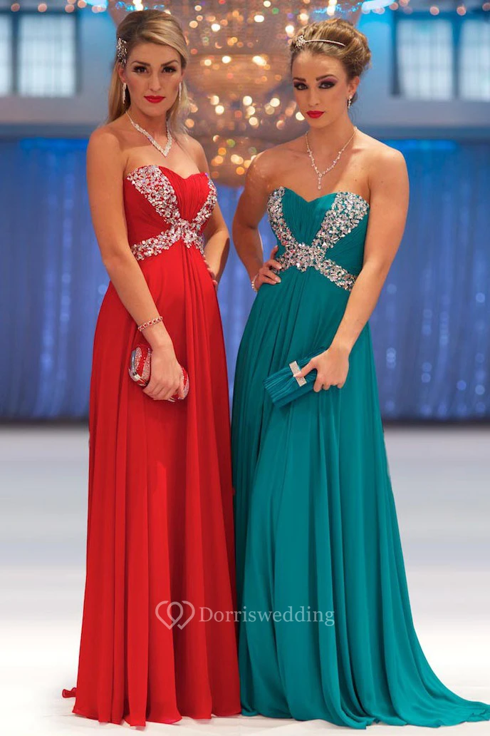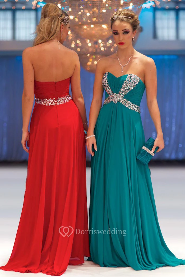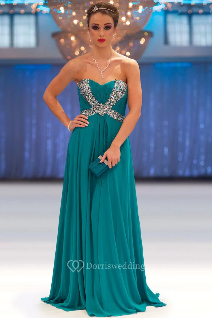 Sheath Sleeveless Sweetheart Empire Floor-Length Beaded Chiffon Prom Dress With Ruching