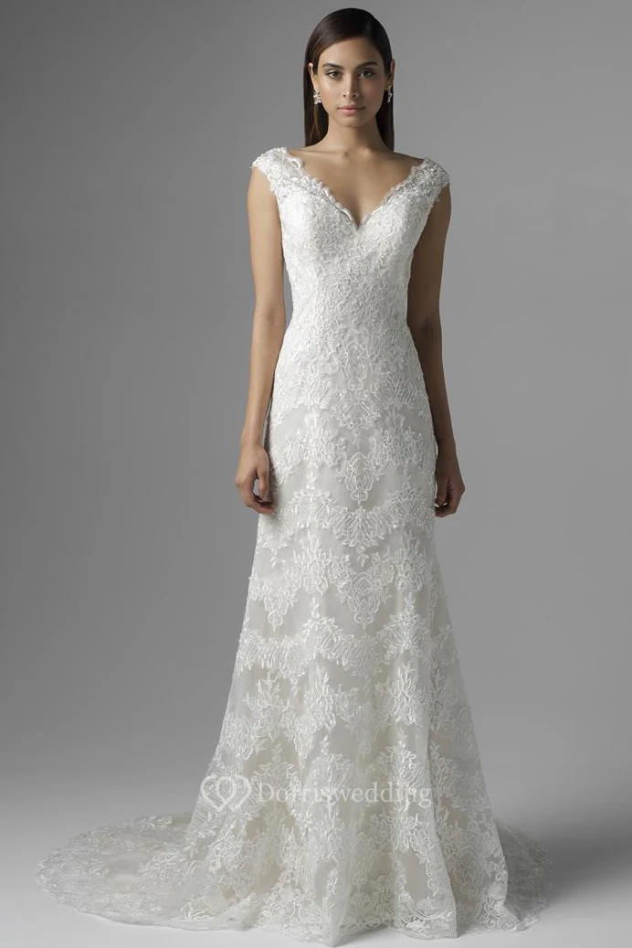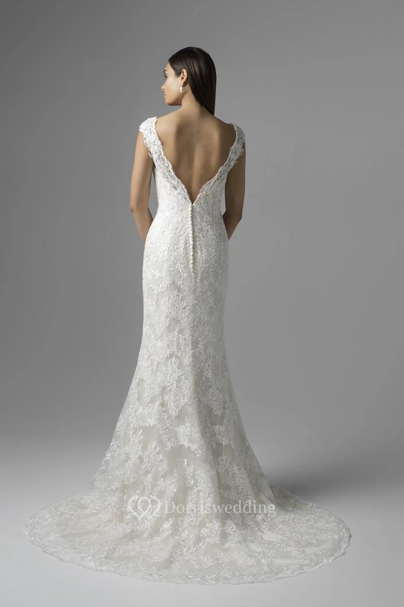 Sheath Sleeveless V-Neck Lace Wedding Dress With Deep-V Back