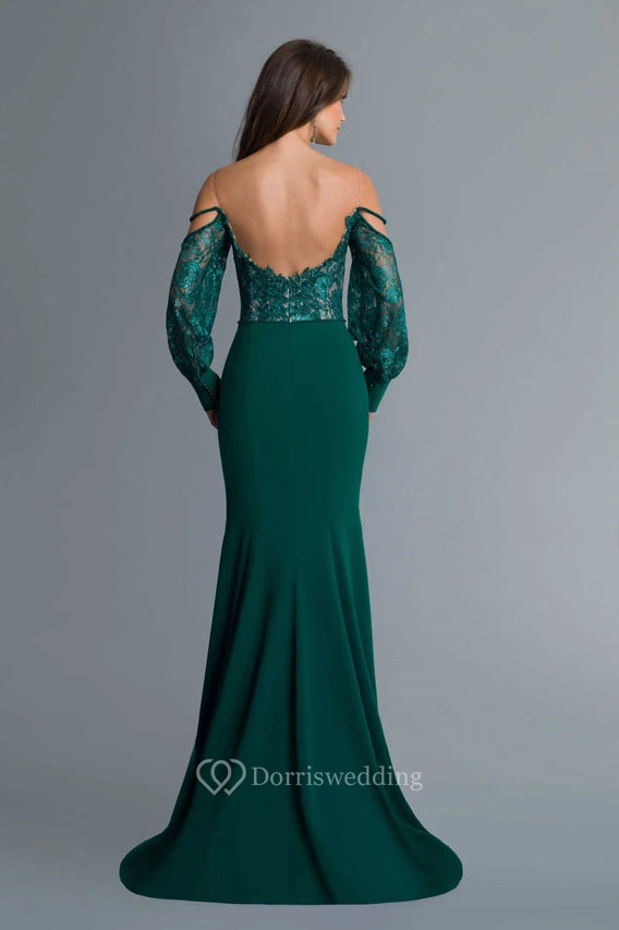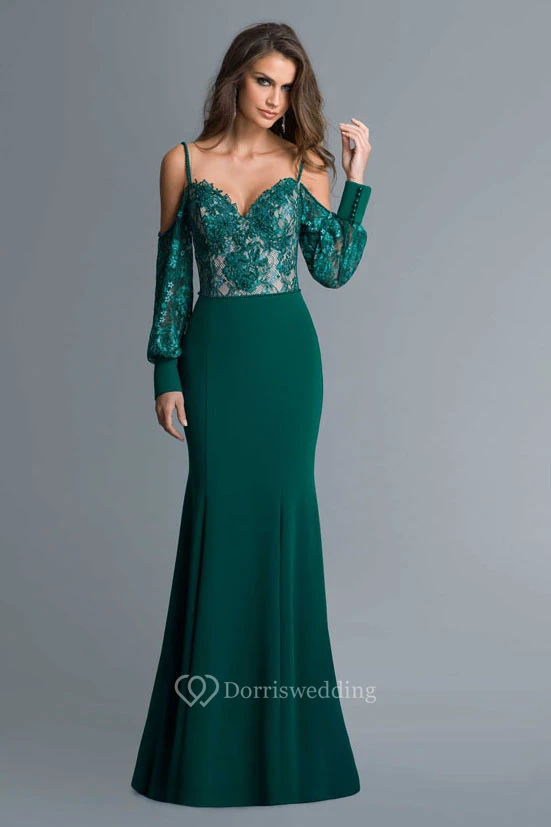 Sheath Spaghetti Long Sleeve Jersey Lace Backless Dress With Appliques