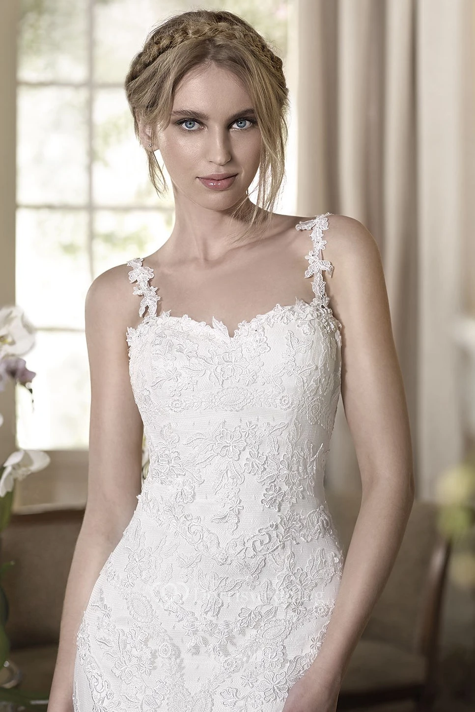 Sheath Spaghetti Sleeveless Floor-Length Appliqued Lace Wedding Dress With Pleats