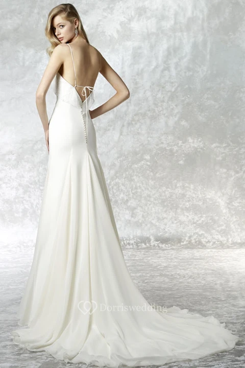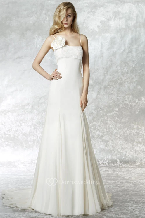 Sheath Spaghetti Sleeveless Floral Chiffon Wedding Dress With Court Train