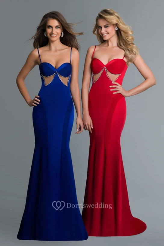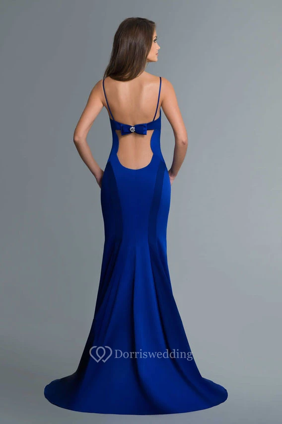 Sheath Spaghetti Sleeveless Jersey Backless Dress With Beading And Bow