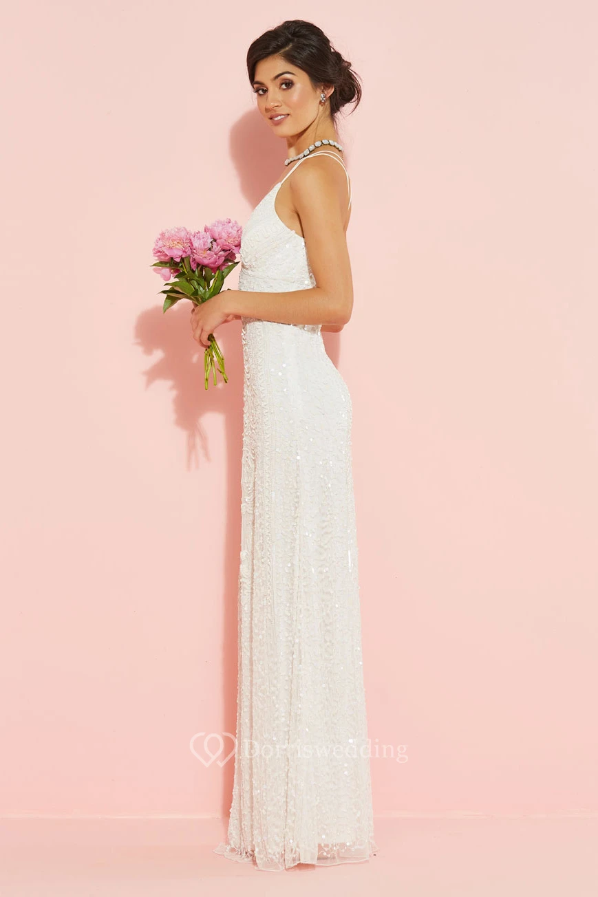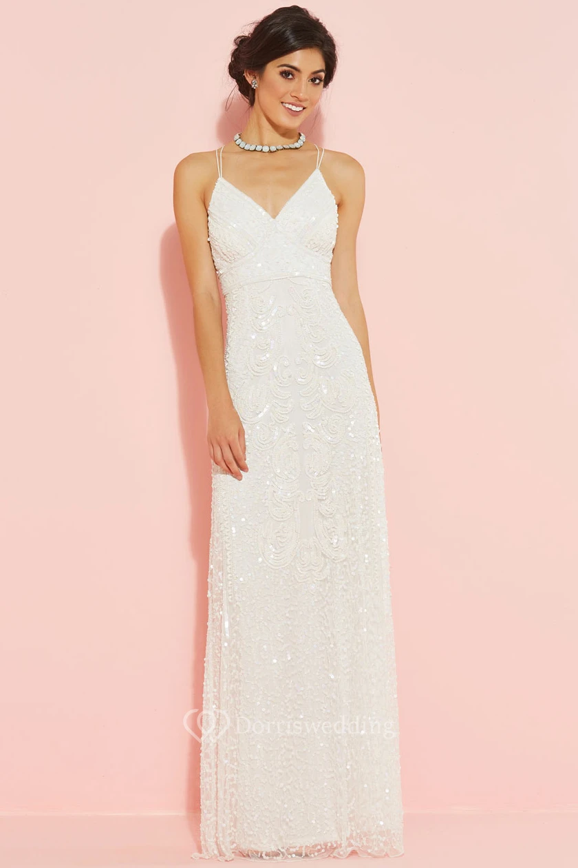 Sheath Spaghetti Sleeveless Sequined Floor-Length Wedding Dress