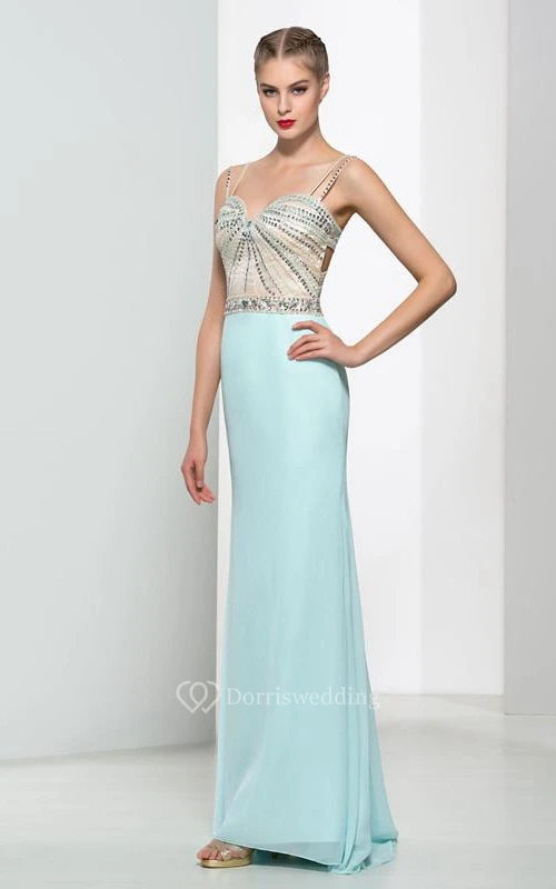 Sheath Spaghetti Straps Beading Hollow Evening Dress