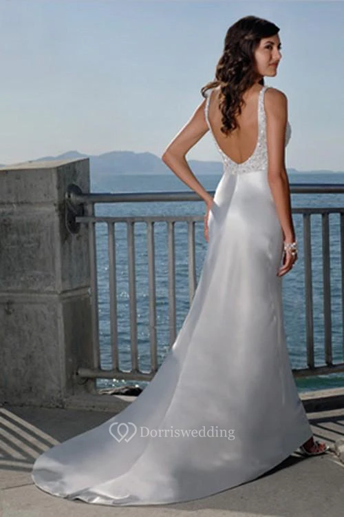 sheath Spaghetti Straps V-neck Elatic Woven Satin Wedding Dress Styles