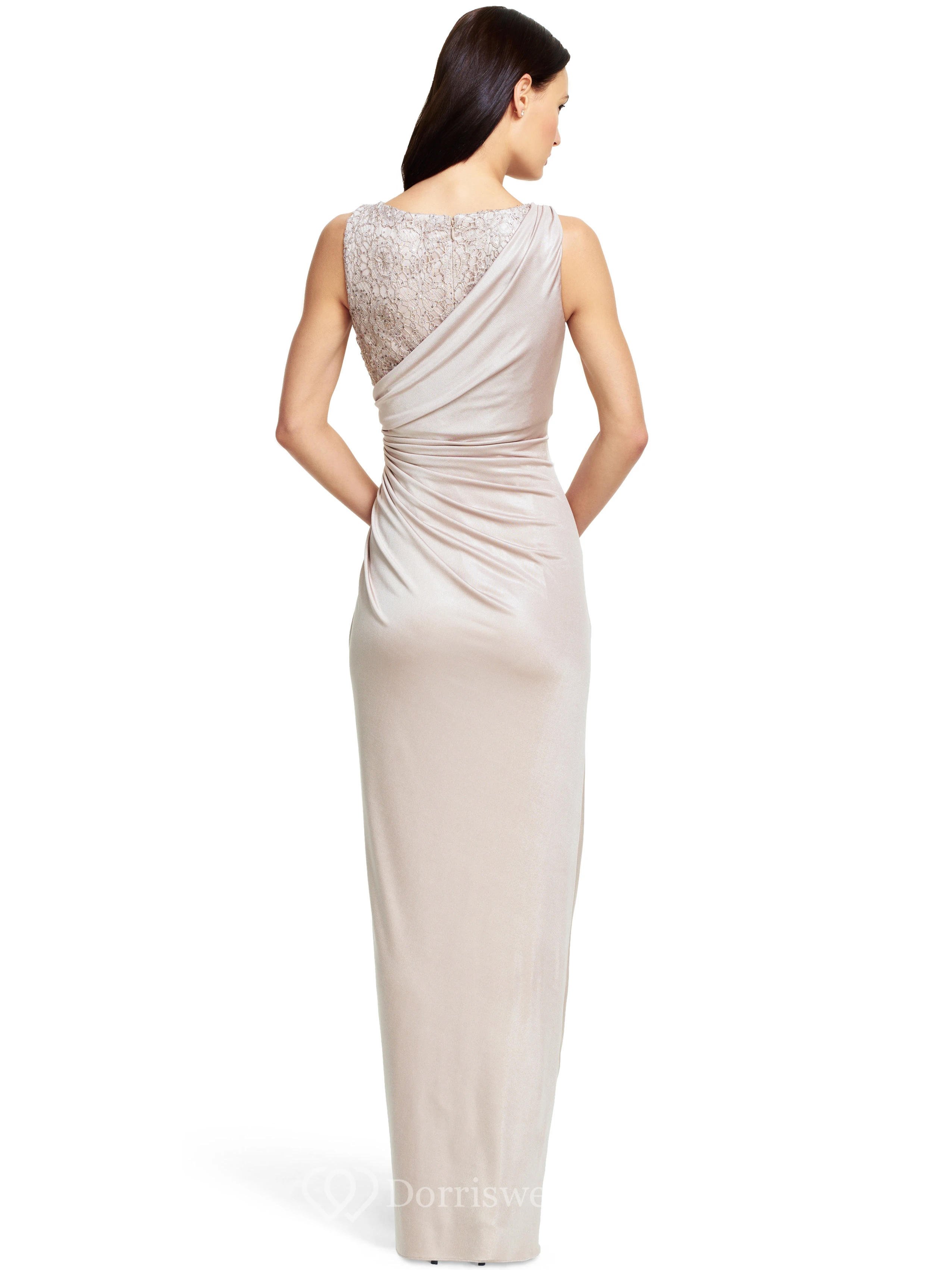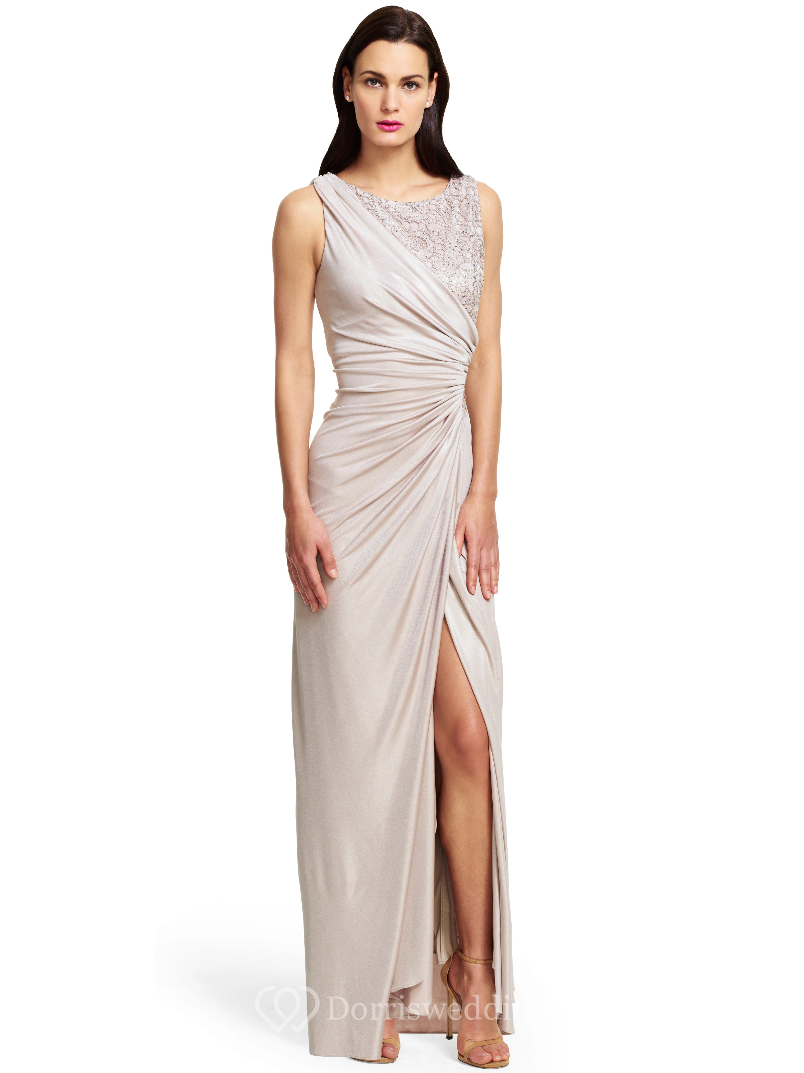 Sheath Split-Front Sleeveless Bateau Neck Jersey Bridesmaid Dress