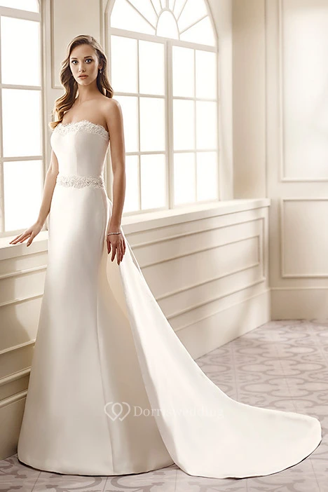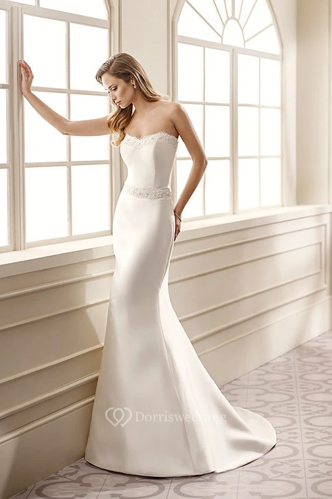 Sheath Strapless Beaded Maxi Sleeveless Satin Wedding Dress With Waist Jewellery