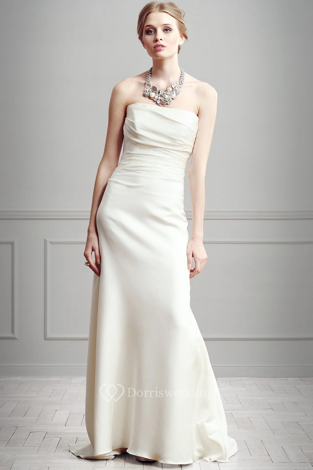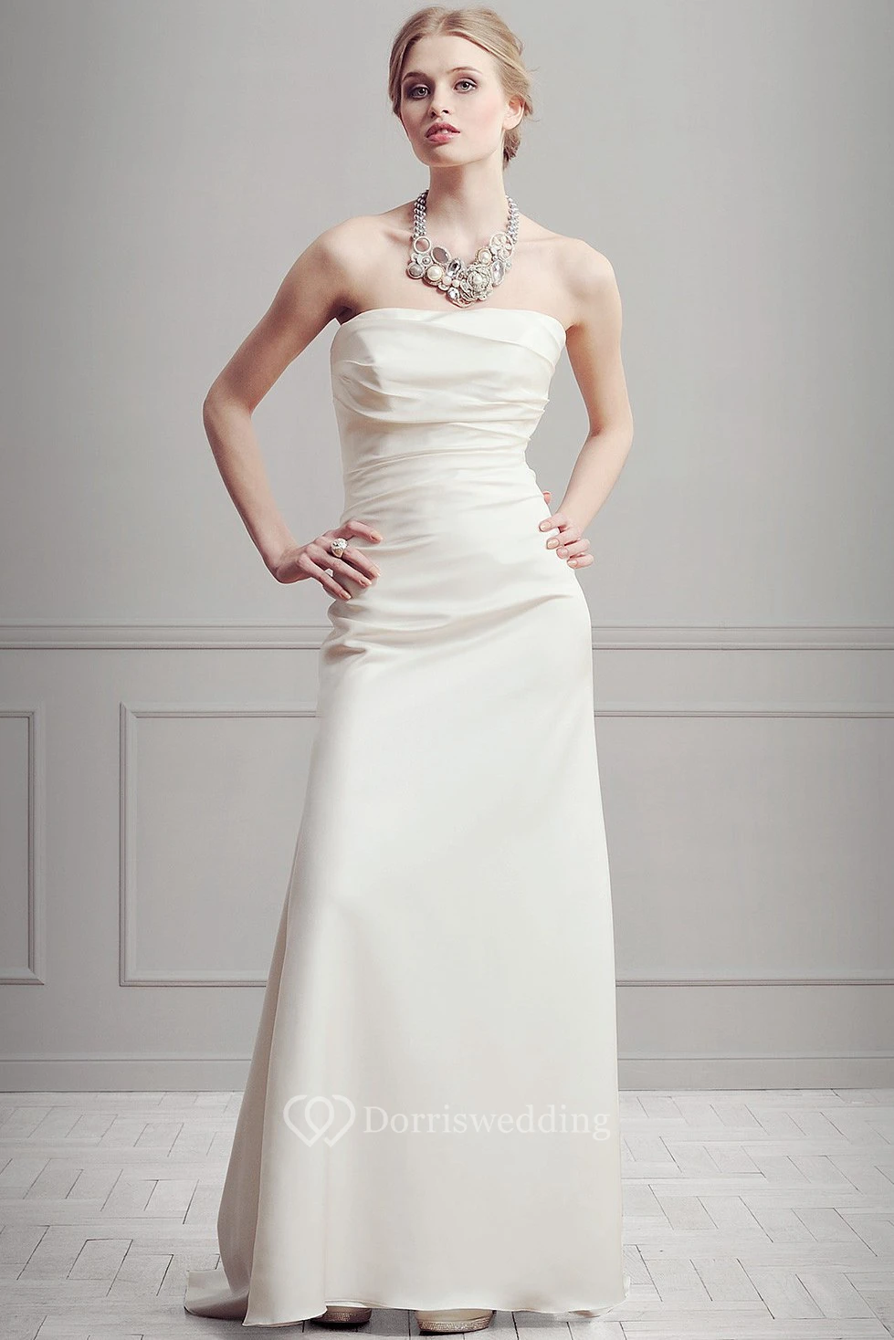 Sheath Strapless Floor-Length Ruched Sleeveless Satin Wedding Dress