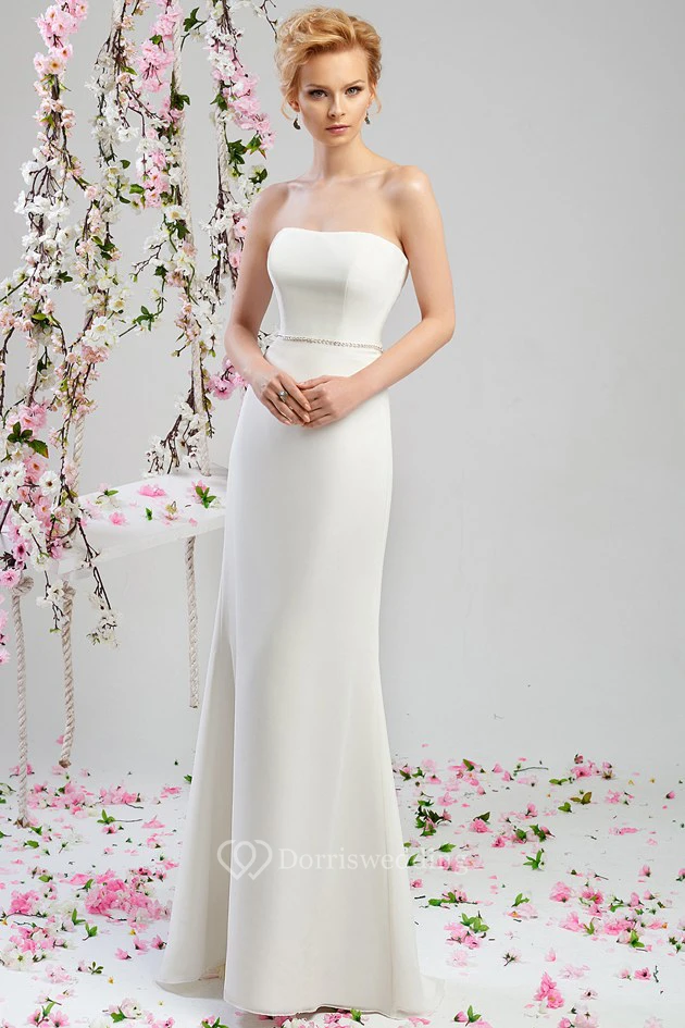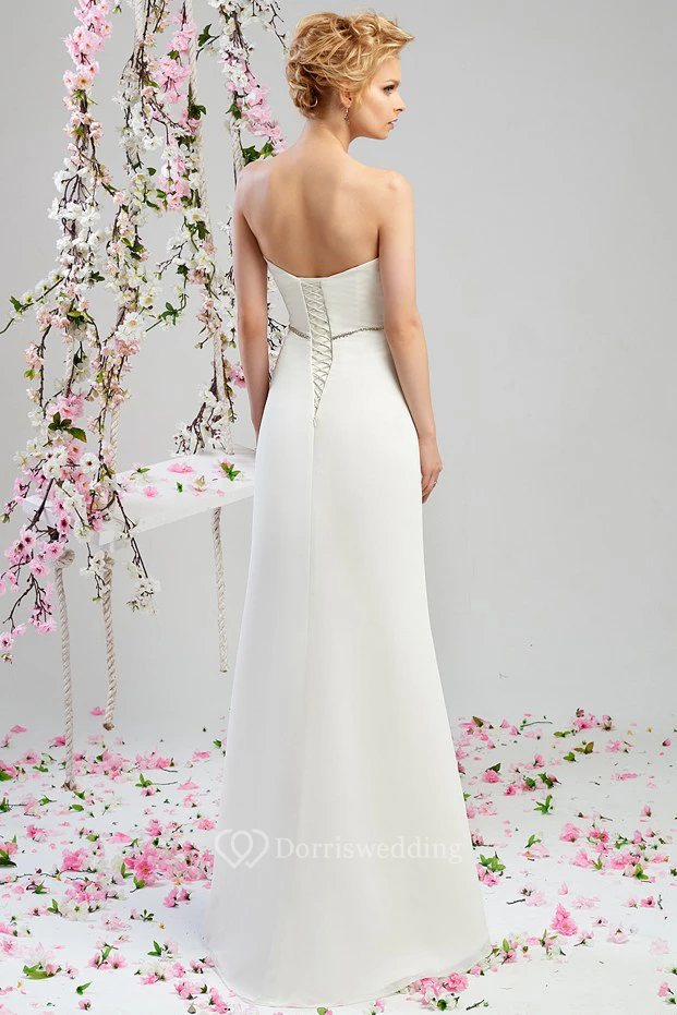 Sheath Strapless Maxi Chiffon Wedding Dress With Waist Jewellery And Corset Back
