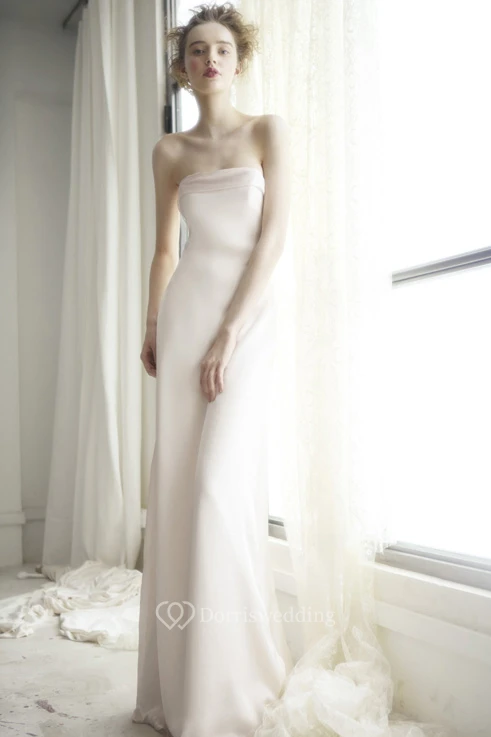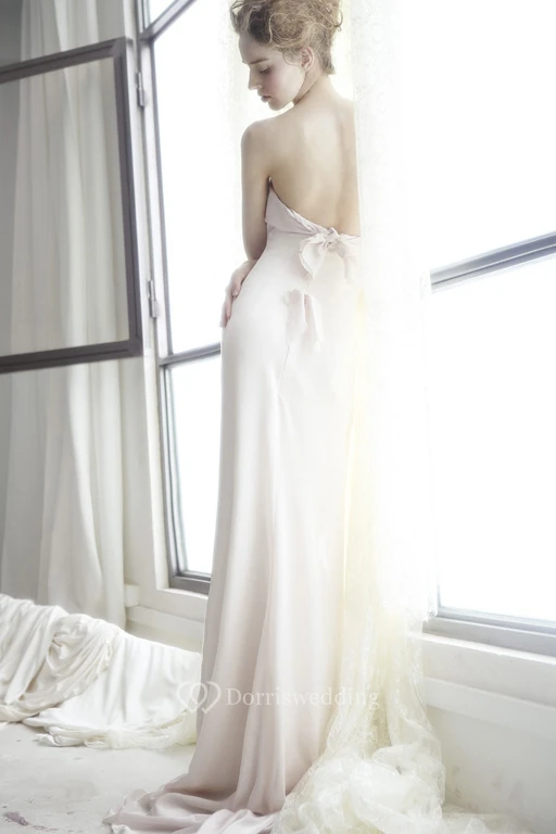 Sheath Strapless Sleeveless Bowed Floor-Length Wedding Dress With Backless Style And Brush Train