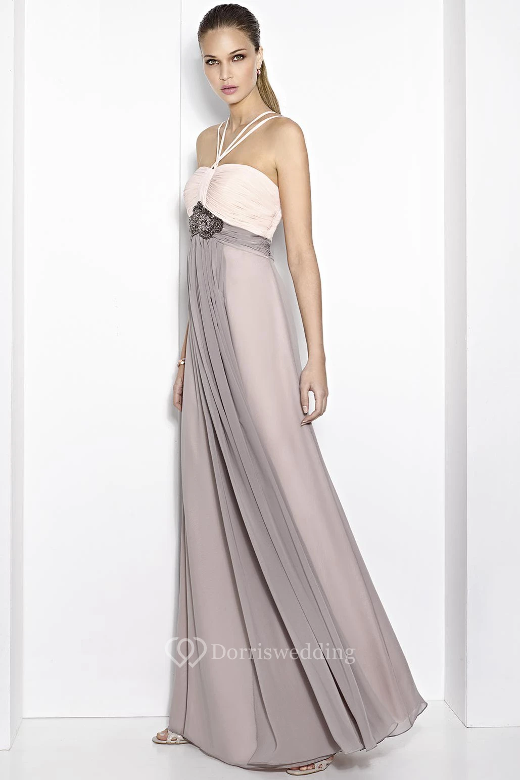 Sheath Strapped Empire Sleeveless Floor-Length Ruched Prom Dress With Waist Jewellery
