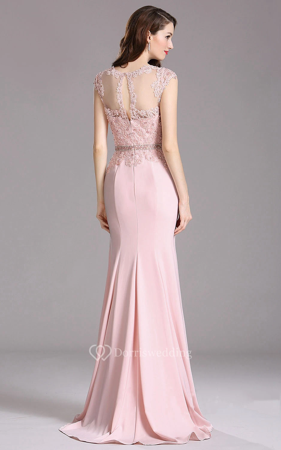 Sheath Sweep Bateau Short Sleeve Taffeta Lace Keyhole Dress