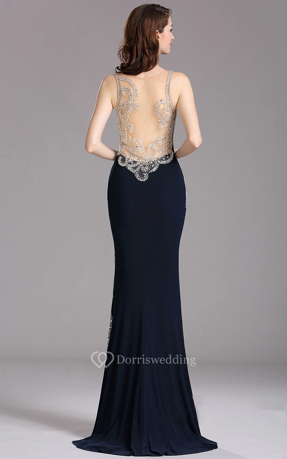 Sheath Sweep Sweetheart Sleeveless Jersey Beading Illusion Dress