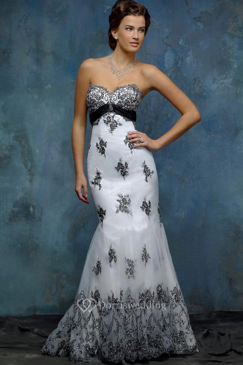 Sheath Sweetheart Appliqued Floor-Length Sleeveless Tulle&Satin Wedding Dress With Broach And Zipper Back