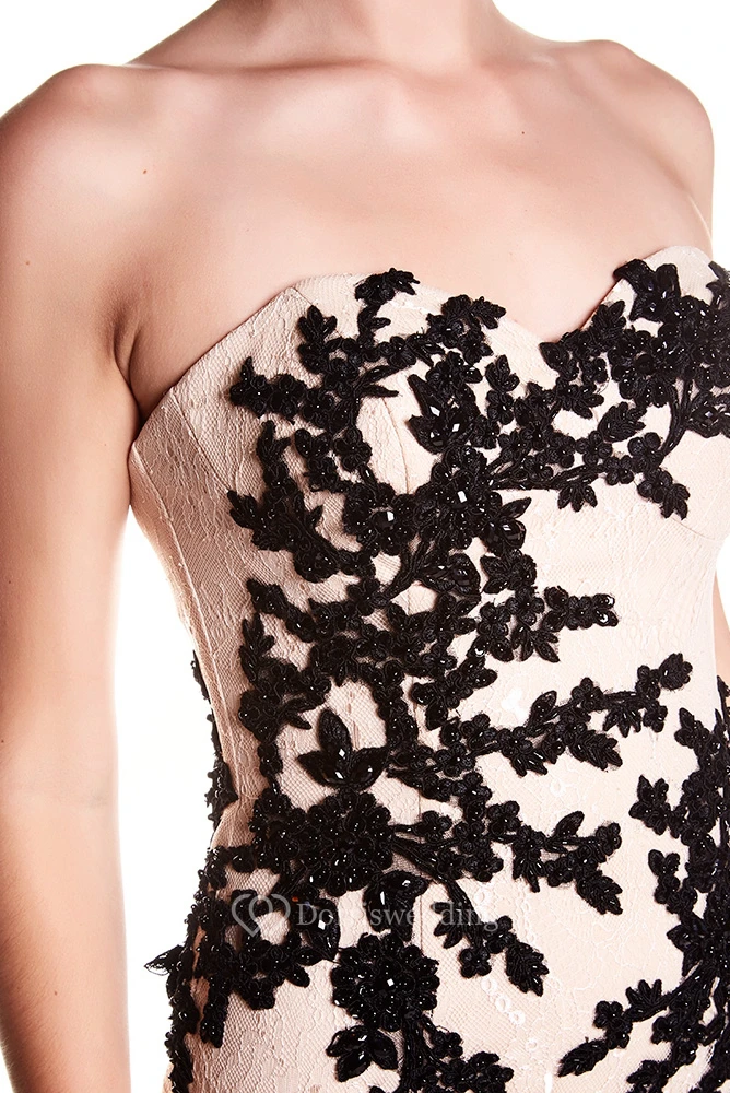 Sheath Sweetheart Appliqued Maxi Sleeveless Lace Prom Dress With Backless Style And Sweep Train
