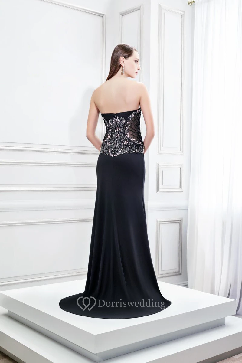 Sheath Sweetheart Beaded Long Sleeveless Jersey Prom Dress With Backless Style And Split Front