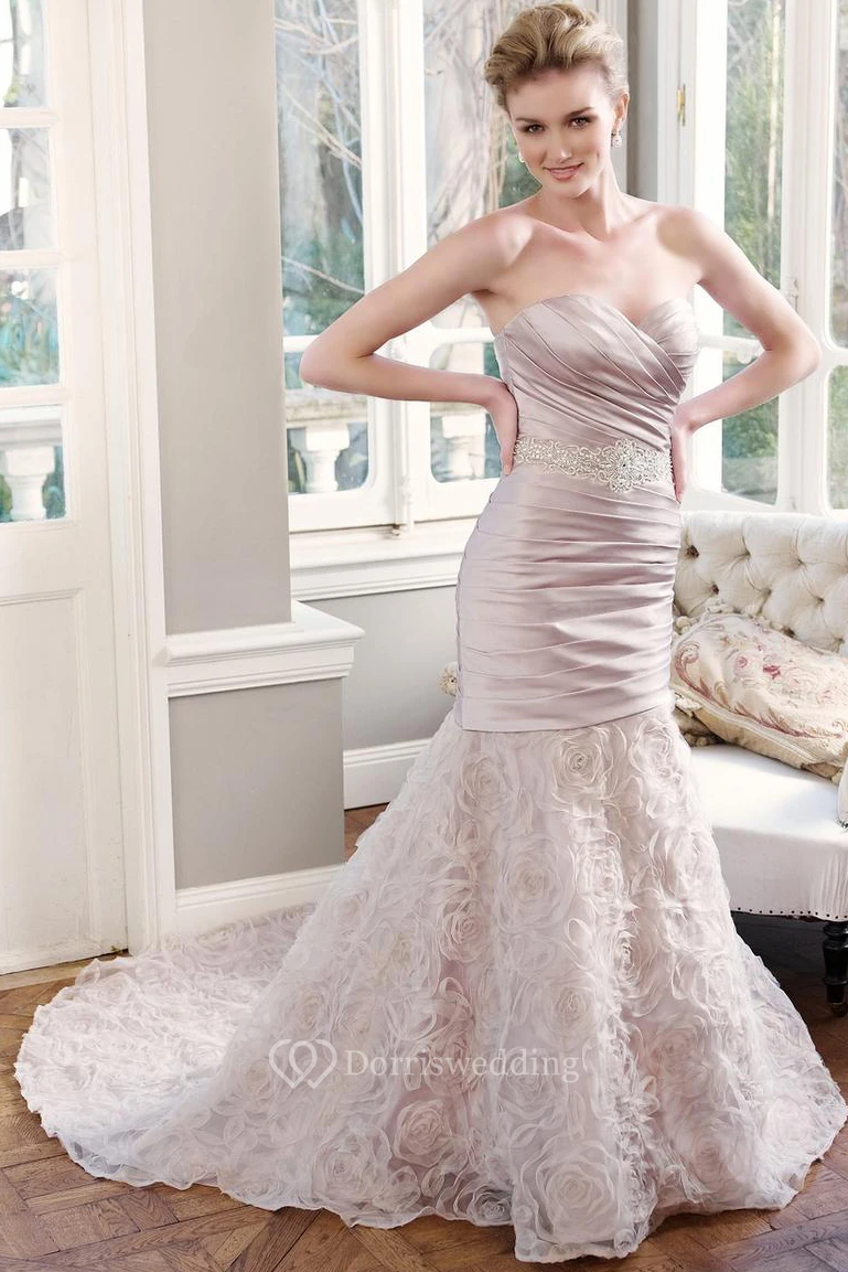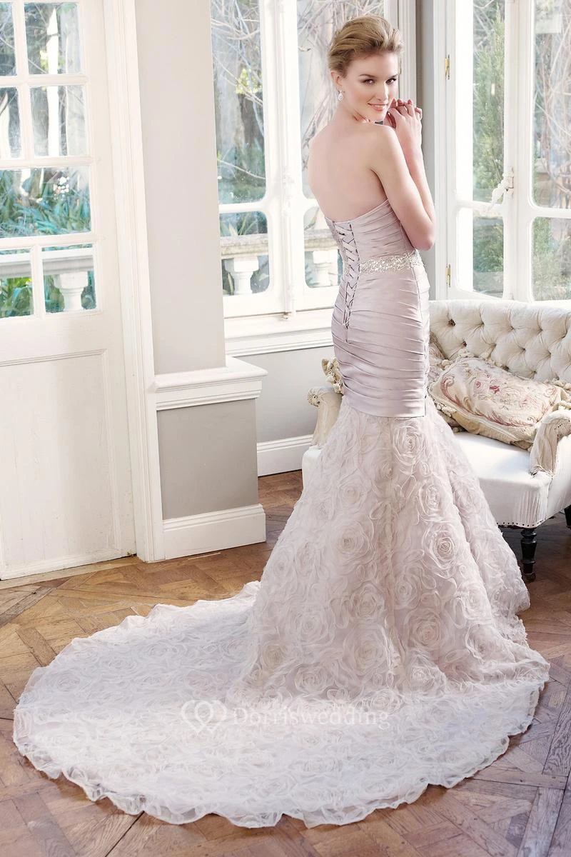Sheath Sweetheart Criss-Cross Floor-Length Sleeveless Mermaid Wedding Dress With Waist Jewellery And Ruffles