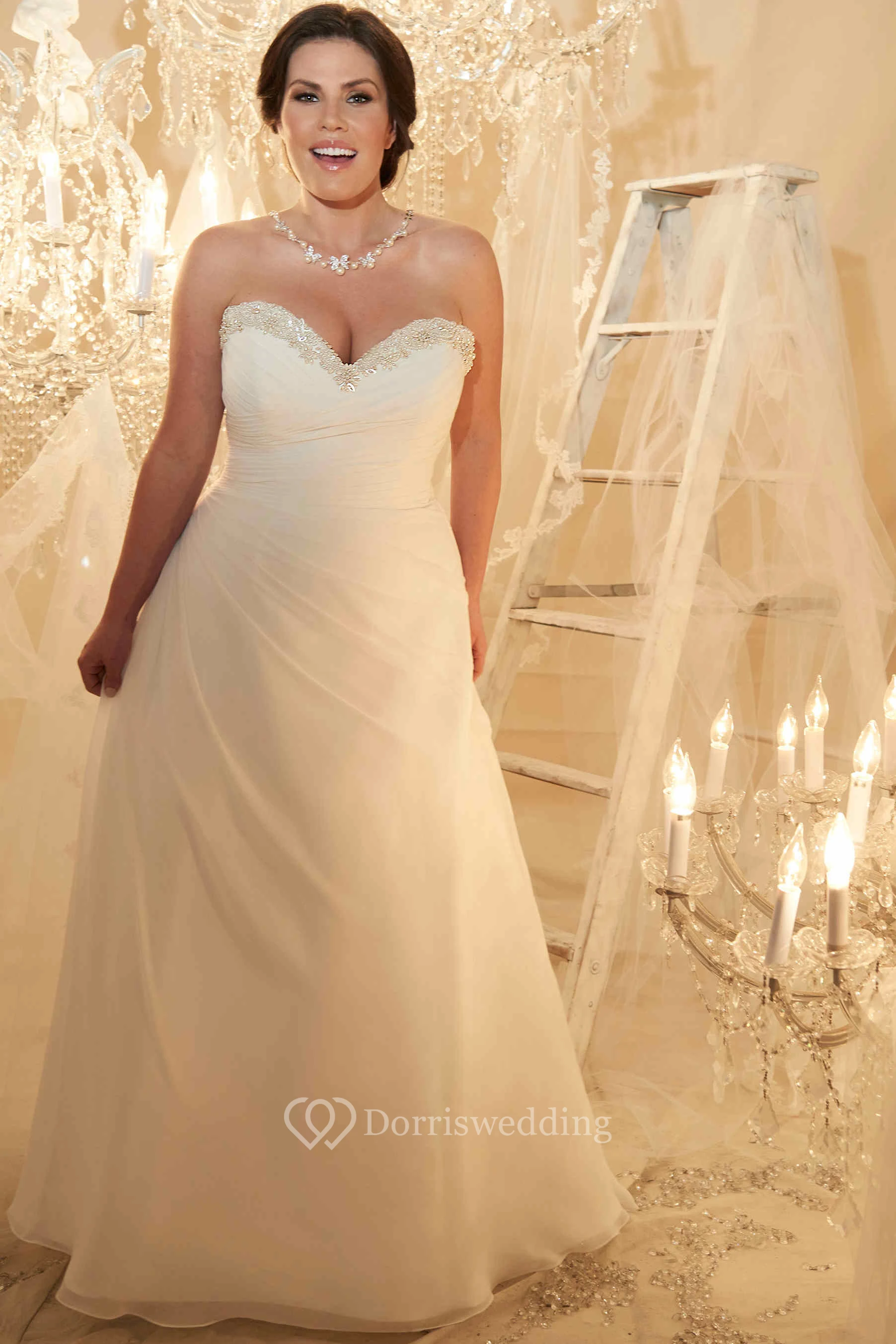 Sheath Sweetheart Draped Floor-Length Chiffon Plus Size Wedding Dress With Beading