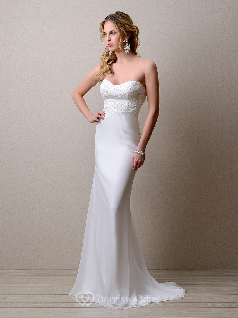 Sheath Sweetheart Empire Chiffon Wedding Dress With Lace Bodice