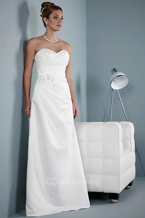 Sheath Sweetheart Floral Sleeveless Satin Wedding Dress