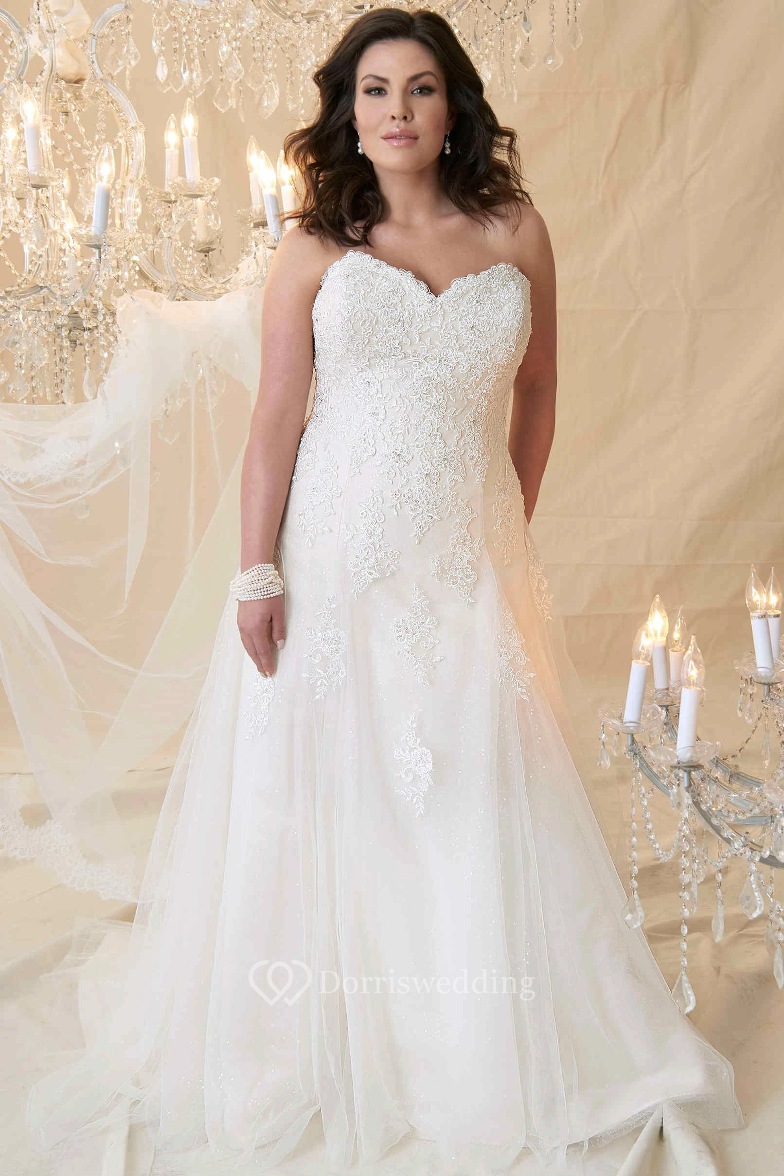 Sheath Sweetheart Lace&Tulle Plus Size Wedding Dress With Lace Up