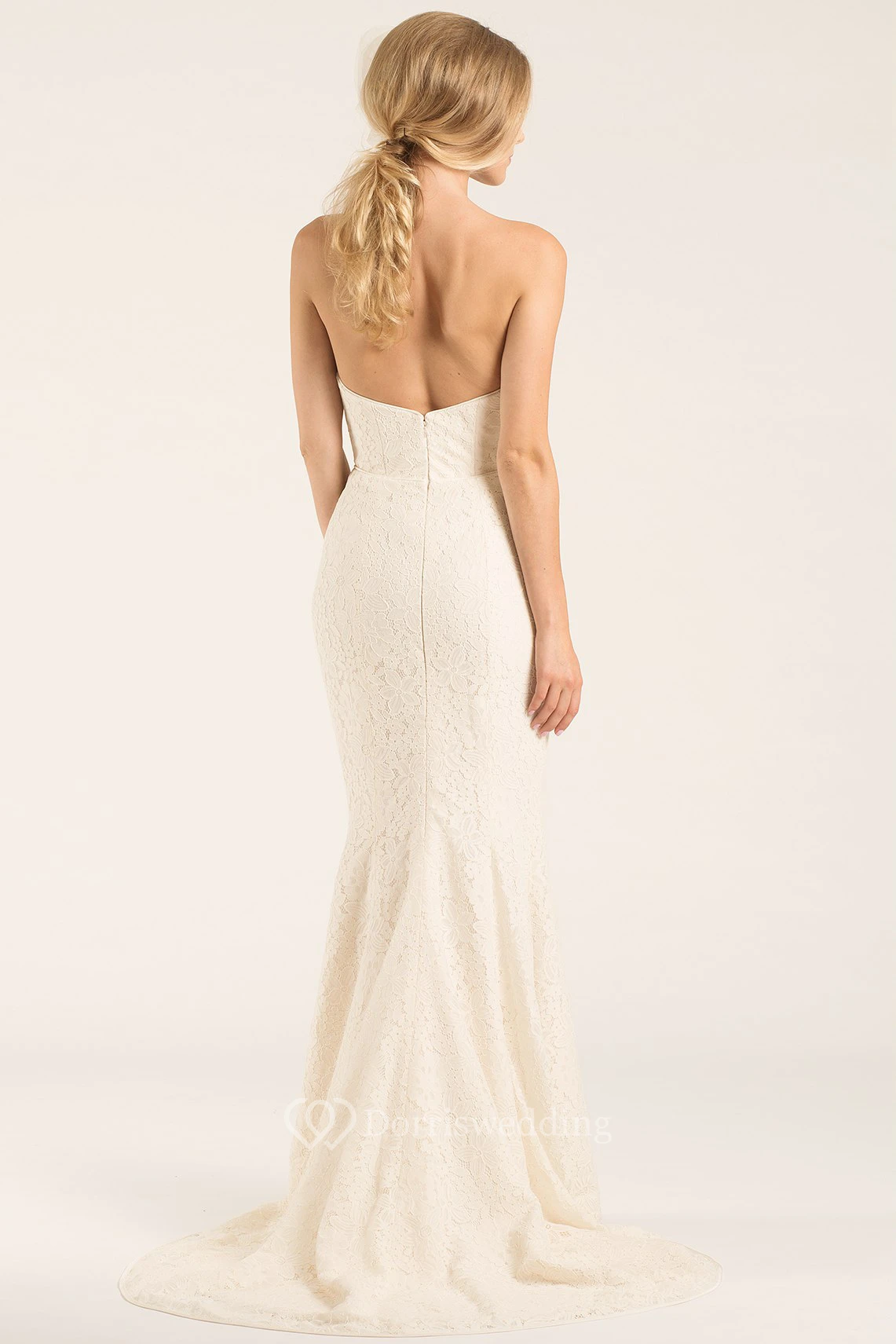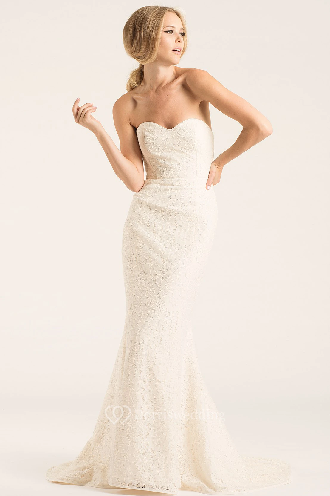 Sheath Sweetheart Lace Wedding Dress With Deep-V Back