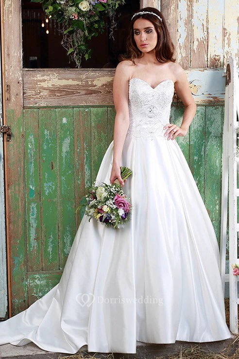Sheath Sweetheart Satin Wedding Dress With Beading