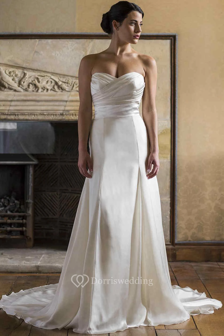 Sheath Sweetheart Satin Wedding Dress With Criss Cross