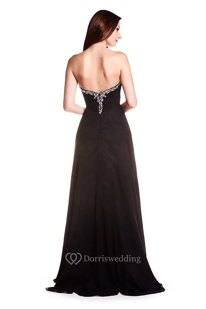 Sheath Sweetheart Sleeveless Beaded Chiffon Prom Dress With Low-V Back