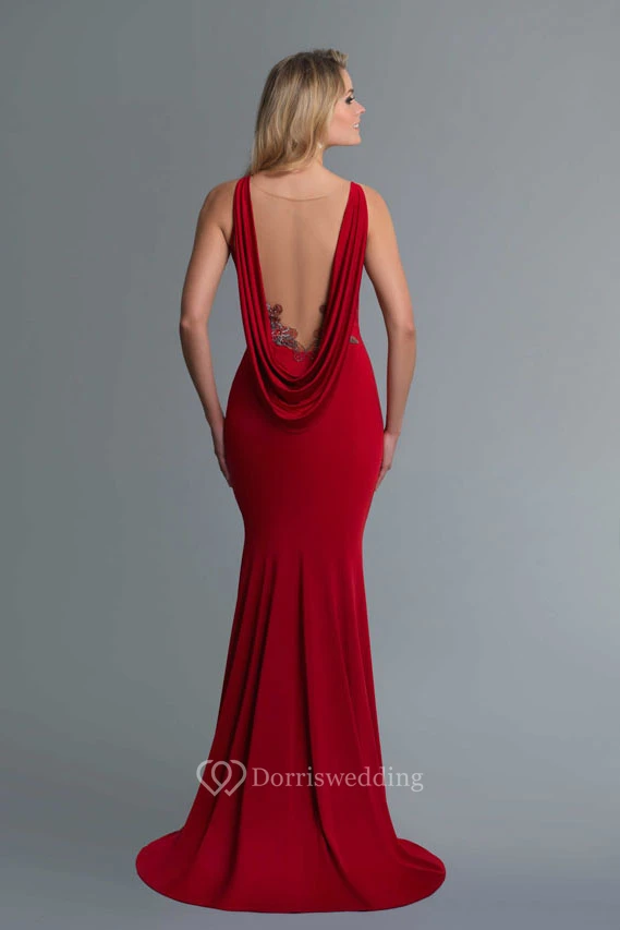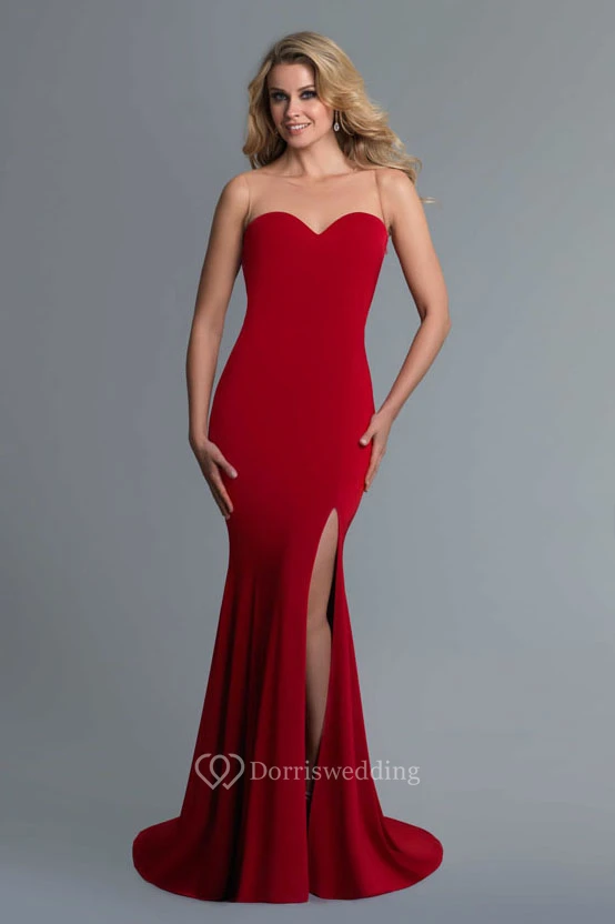 Sheath Sweetheart Sleeveless Jersey Illusion Dress With Split Front
