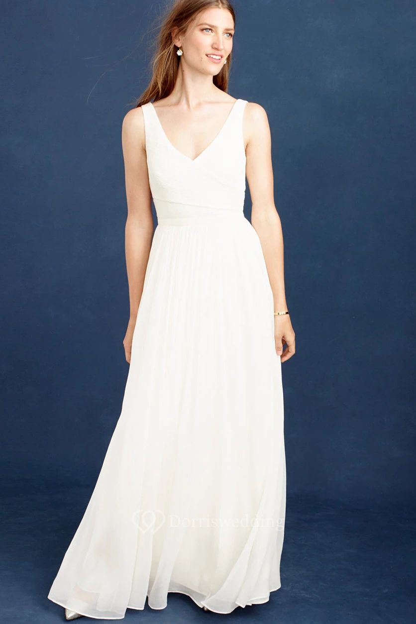 Sheath V-Neck Floor-Length Pleated Sleeveless Wedding Dress