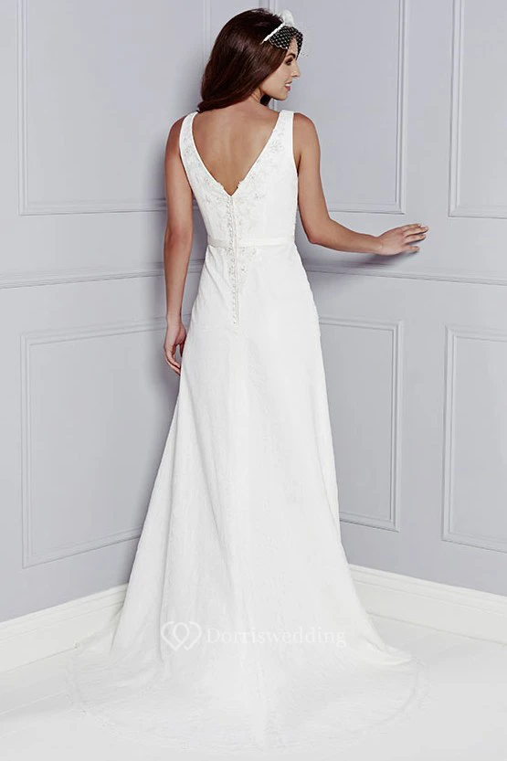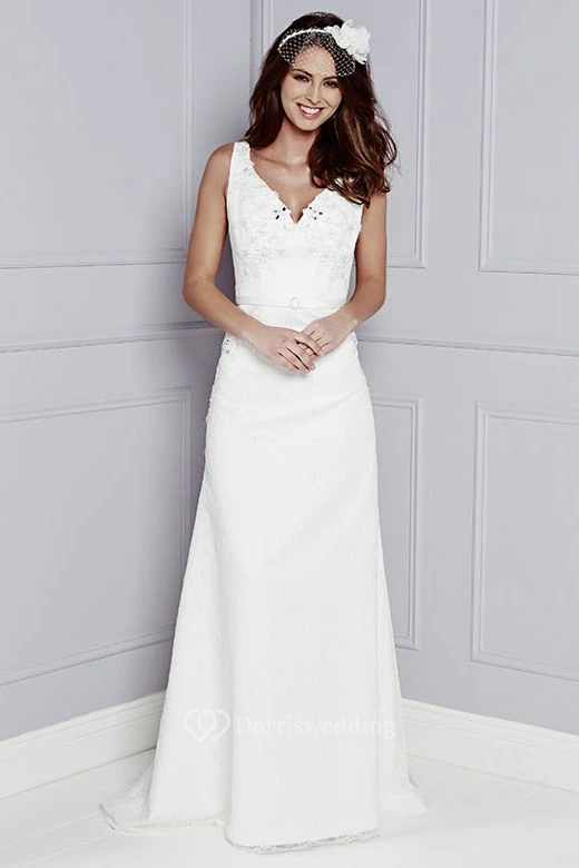 Sheath V-Neck Floor-Length Sleeveless Appliqued Wedding Dress With Beading