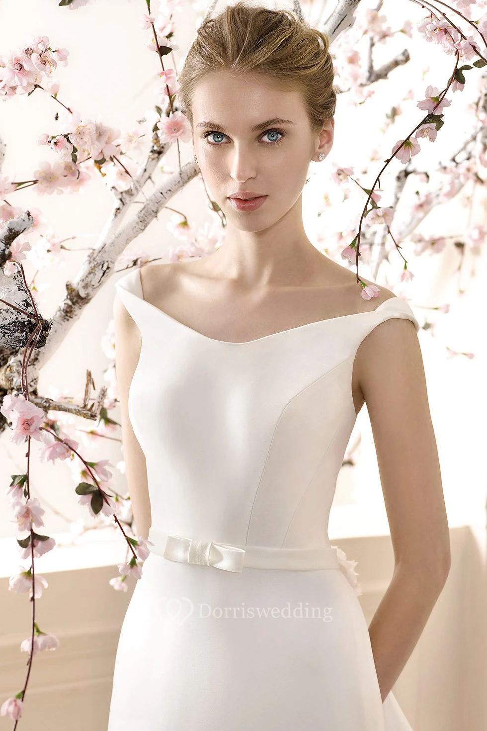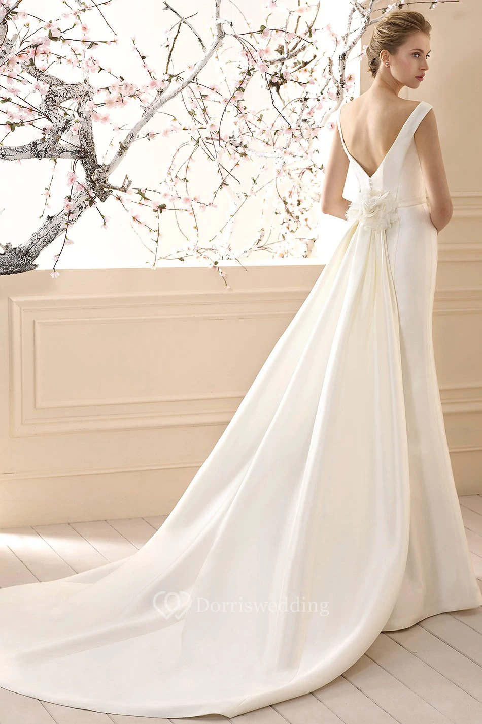 Sheath V-Neck Floral Maxi Satin Wedding Dress