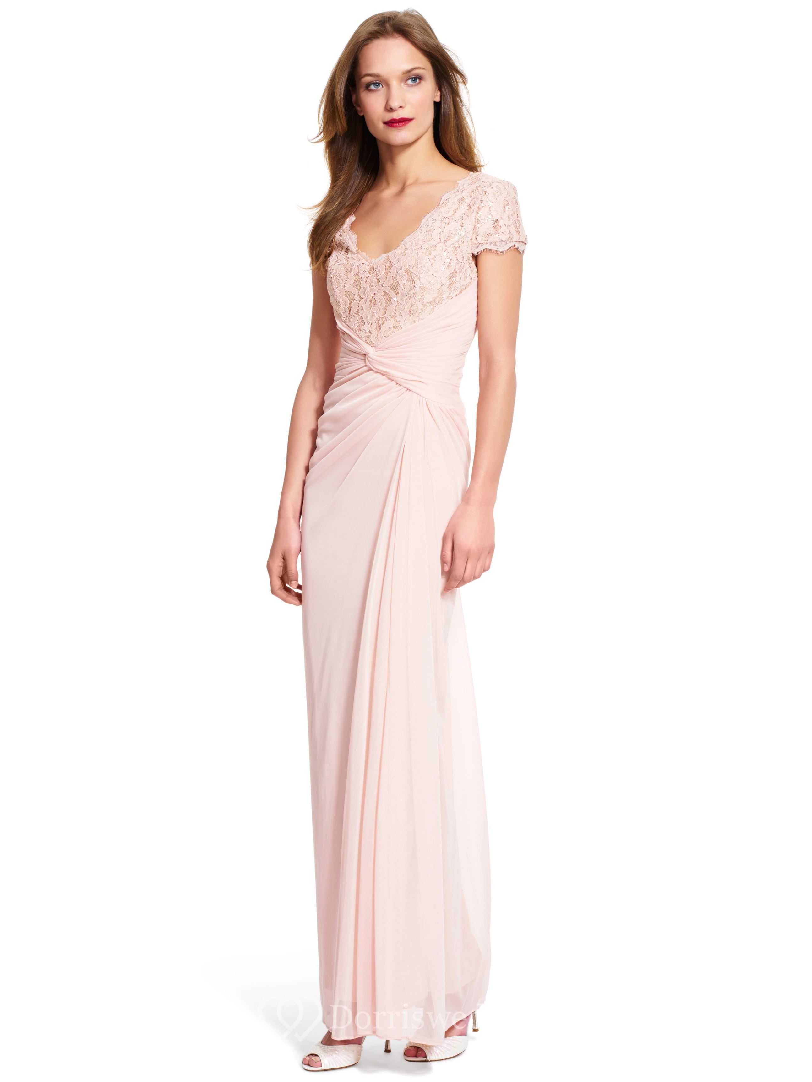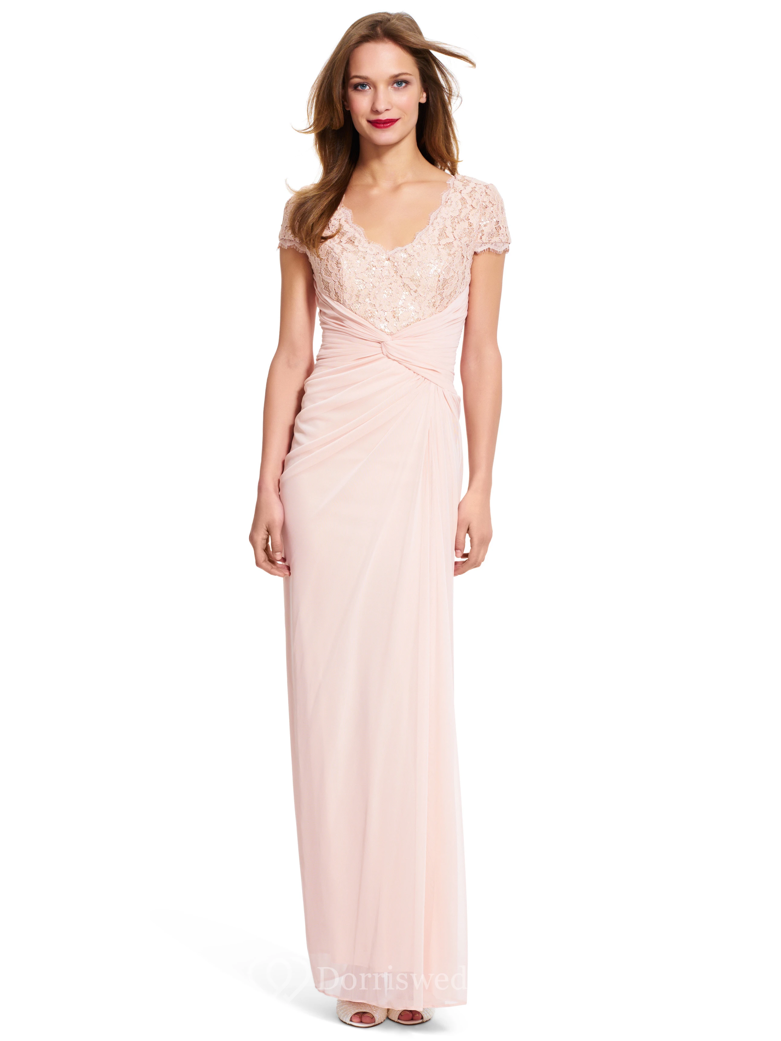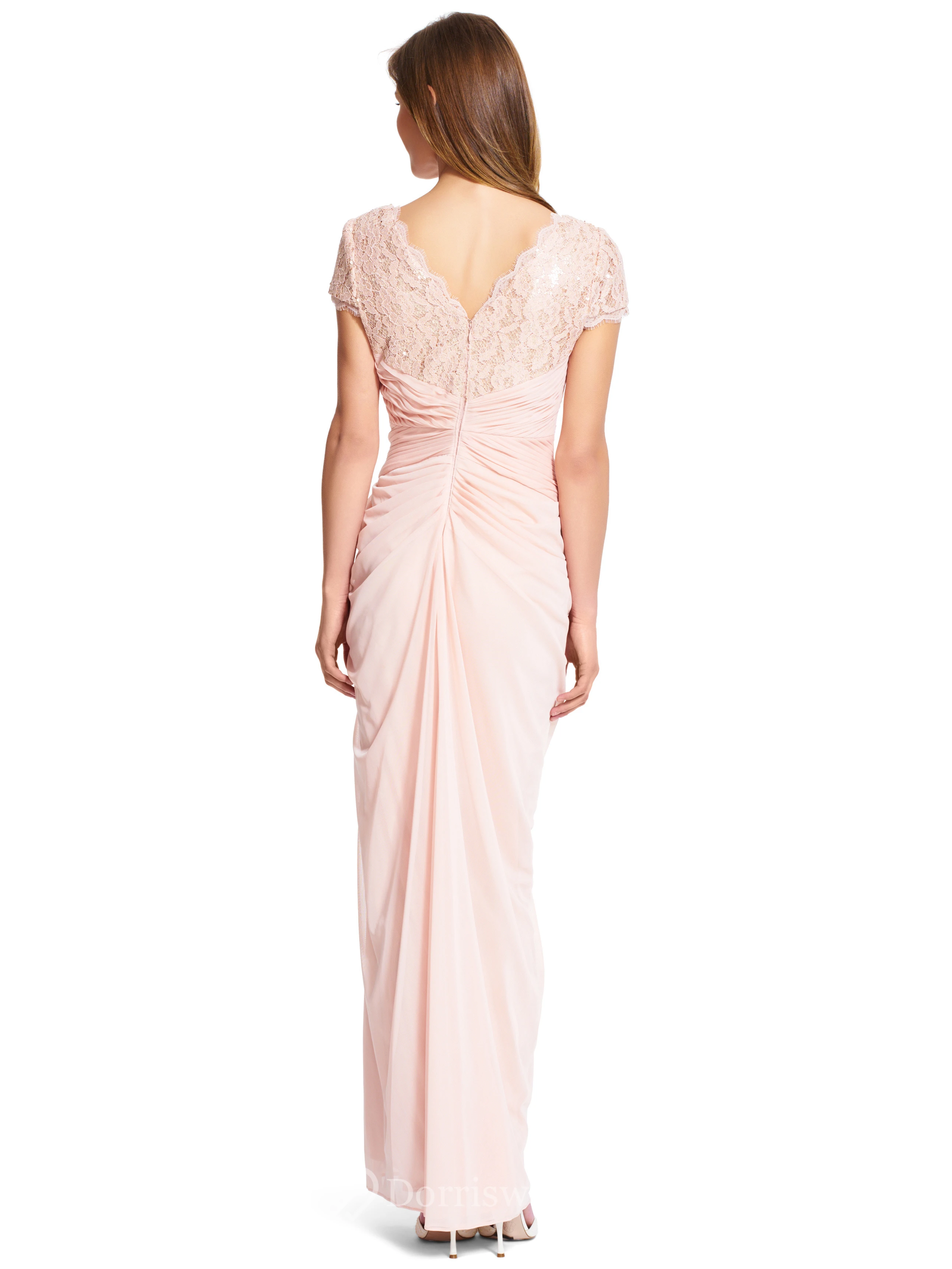 Sheath V-Neck Short-Sleeve Draped Chiffon Bridesmaid Dress