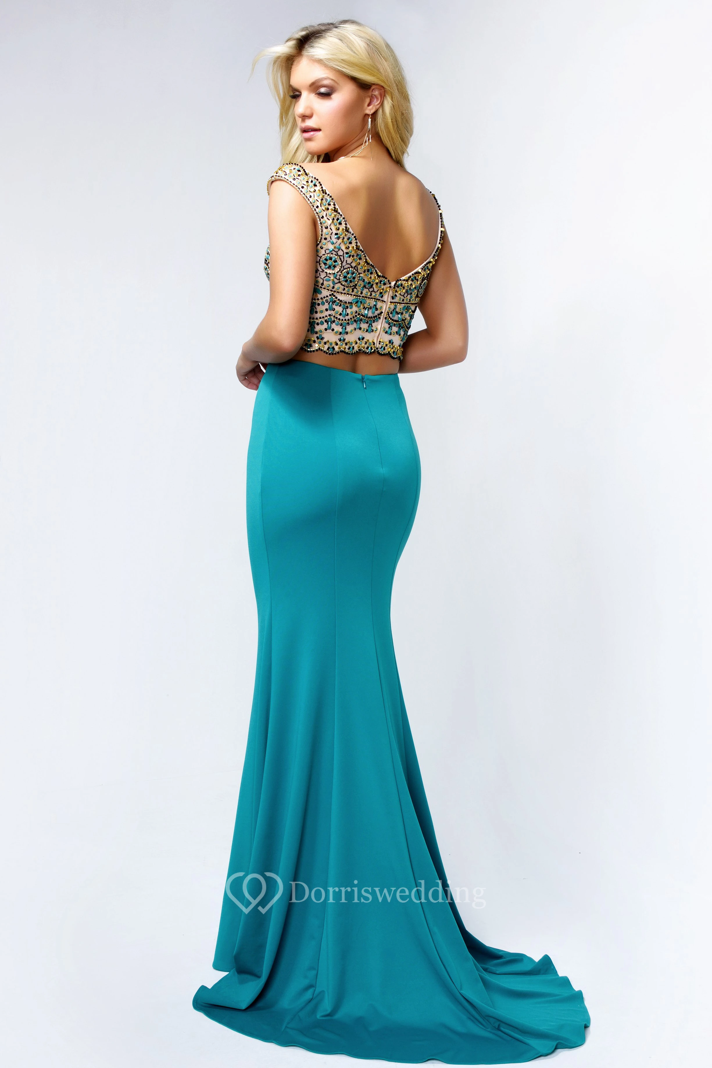 Sheath V-Neck Sleeveless Jersey Low-V Back Dress With Beading