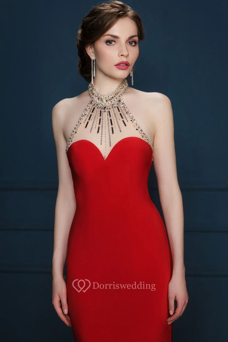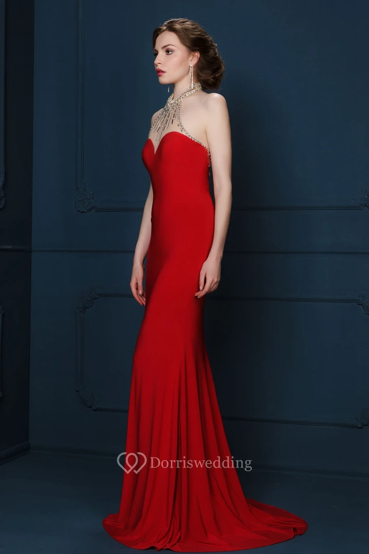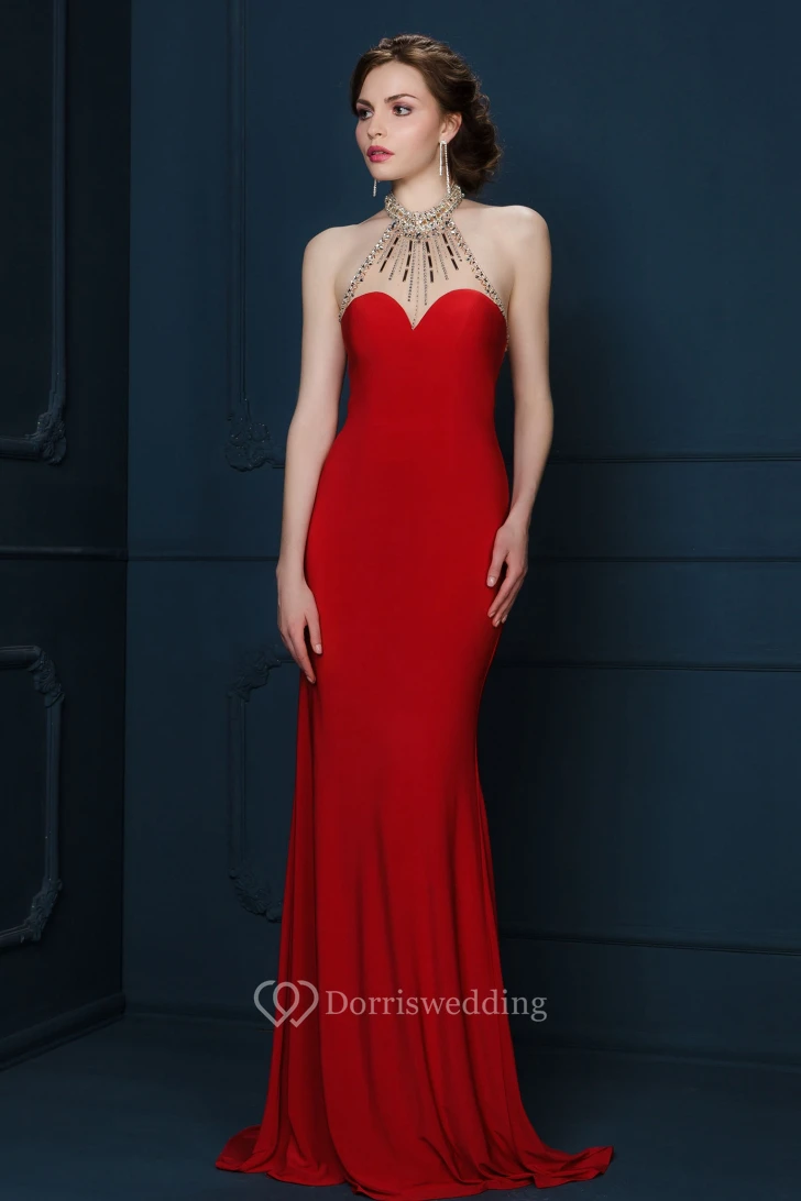 Sheath V-Neck Sleeveless Maxi Beaded Jersey Evening Dress
