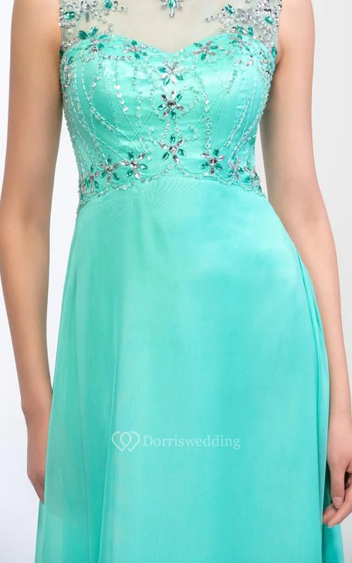 Sheer Neck Sequins Beading Open Back Prom Dresss