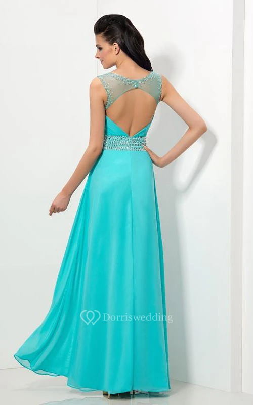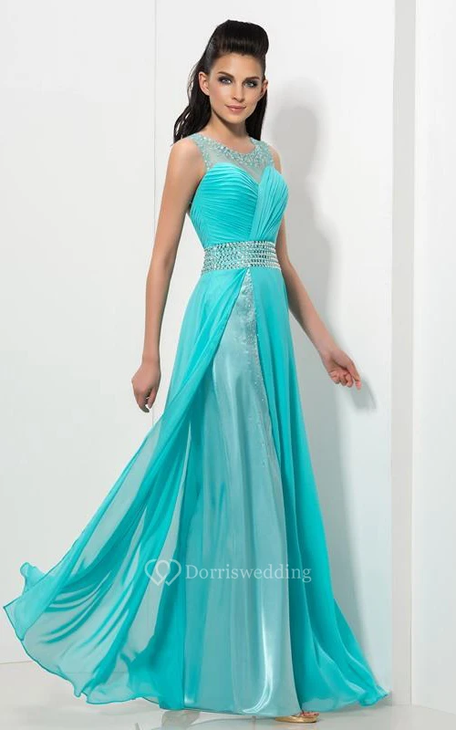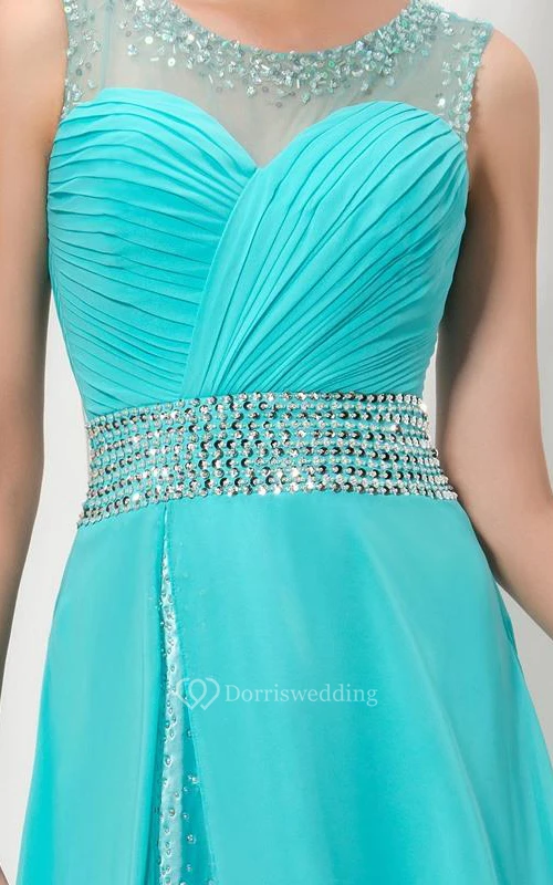 Sheer Neck Sequins Pleats Prom Dress