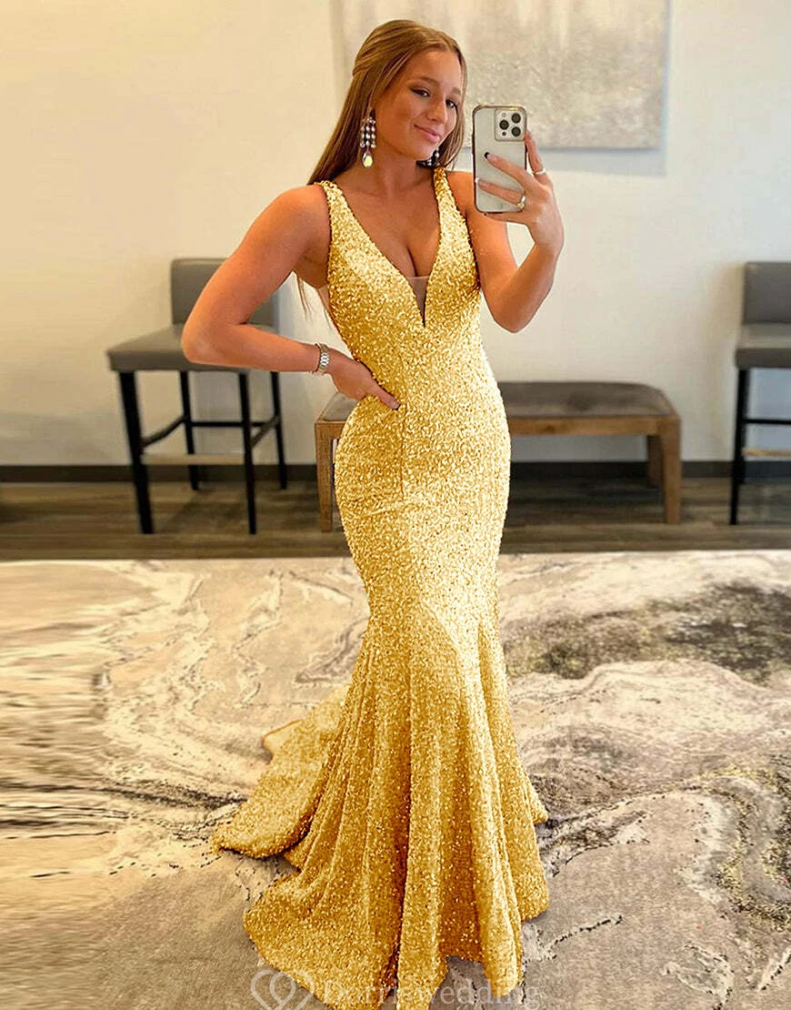 Exude dreamy elegance in this shimmering light-blue sequin mermaid gown, featuring a low open back and a plunging V-neckline. Ideal for prom, pageants, or any formal event where you want all eyes on you. ✨ Features: Light-Blue Sequins, Mermaid Silhouette, Plunging V-Neck, Low Open Back, Floor-Length Hem.