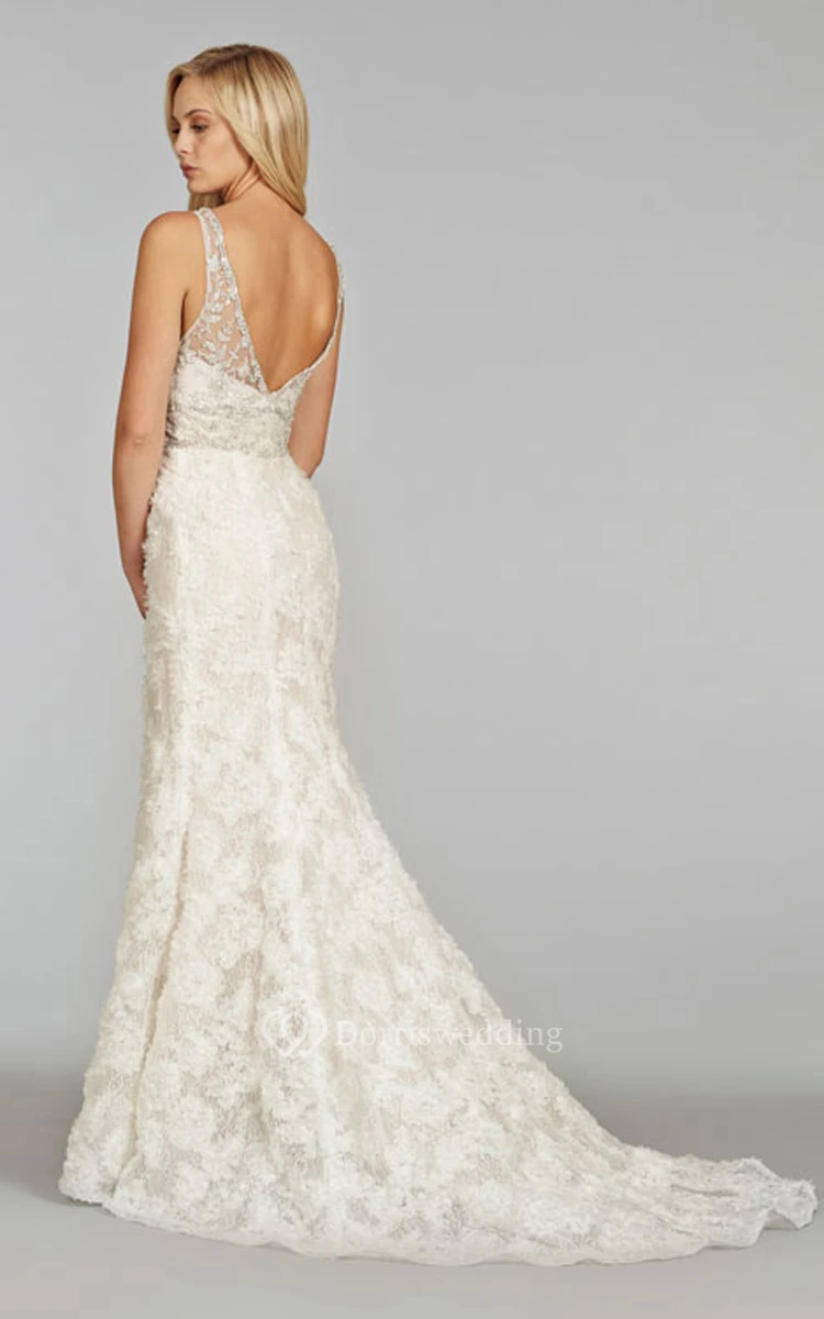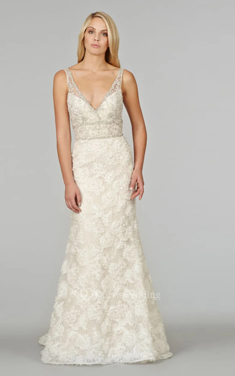 Shimmering V-Neck Lace Mermaid Dress With Beaded Embroidery