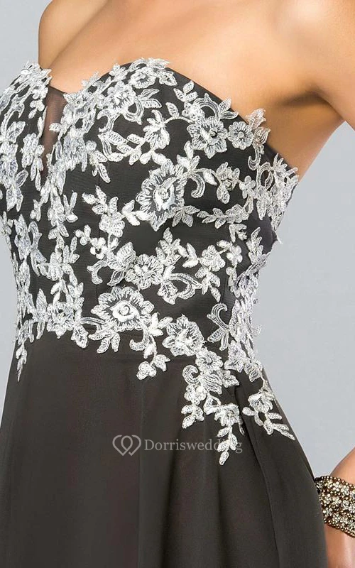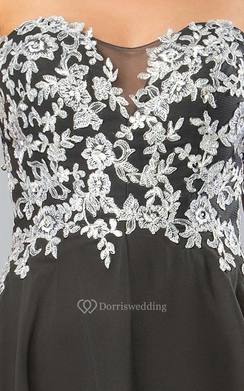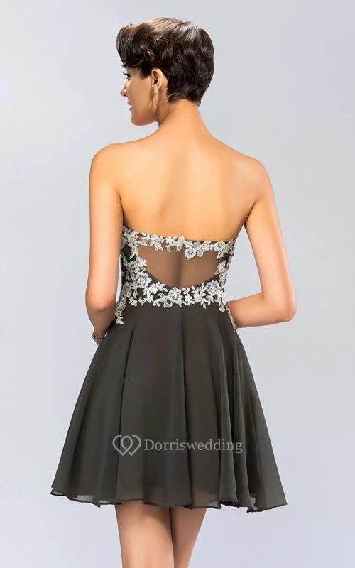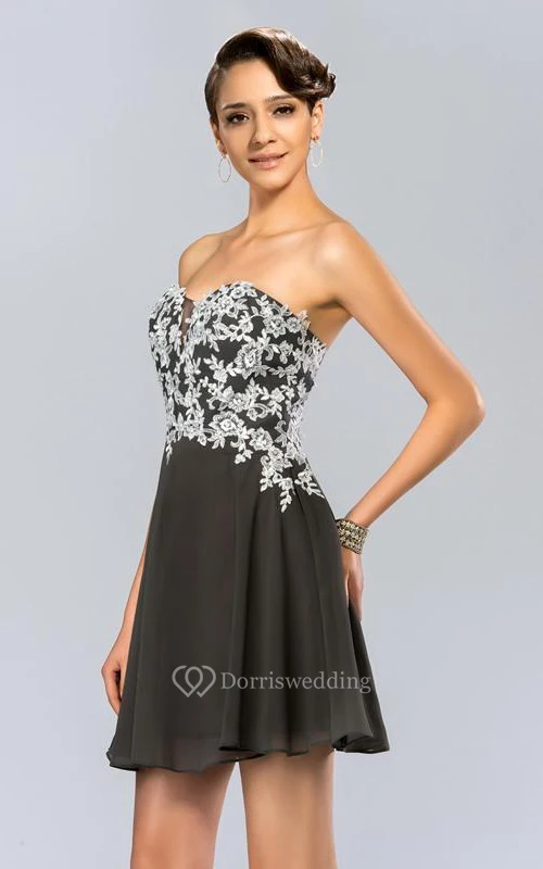 Shinning A-Line Strapless Applique Tulle Short Prom Dress