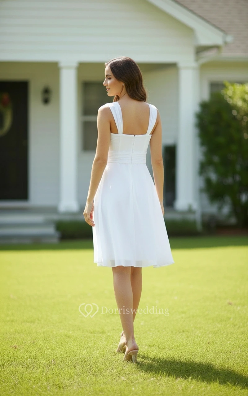 If you're looking for a beautiful and practical short wedding dress, this is it. The combination of the V-neck and short A-line style is just stunning. I felt so light and stylish in this gown. The quality is excellent and the fit is perfect. It’s a very special dress that I am so glad I chose for our civil ceremony. Highly recommend!