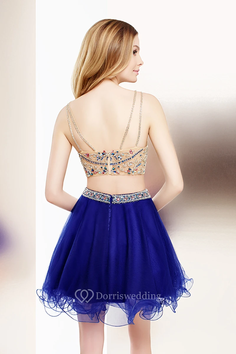 Short A-Line Crystal V-Neck Sleeveless Tulle Cocktail Dress