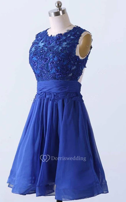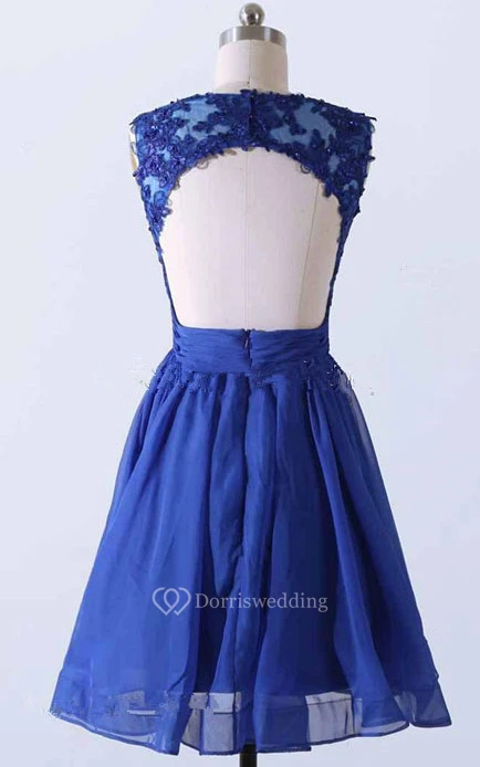 Short A-line Dress With Appliques And Keyhole Back