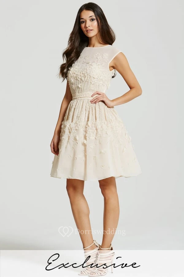 Short A-Line Floral Jewel Neck Sleeveless Chiffon Bridesmaid Dress