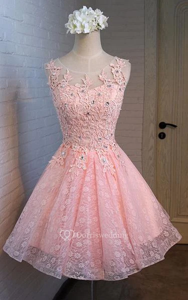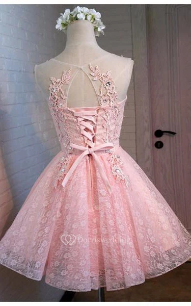 Short A-line Jewel Neck Sleeveless Lace Dress With Appliques