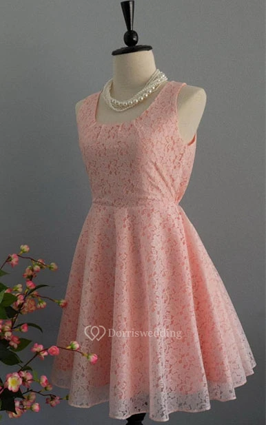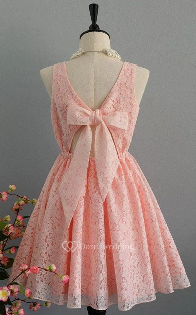 Short A-line Lace Dress With Bow